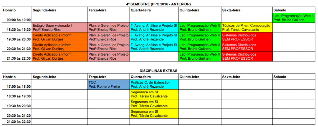 Horário de Aulas 2023.1 – 1º Semestre – Alunos Veteranos (PPC 2016)