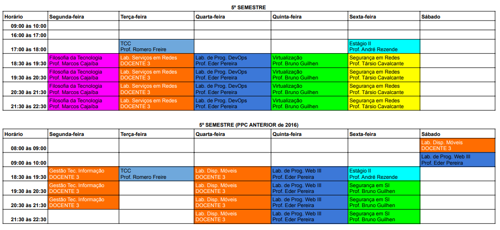 Horário de Aulas 2023.1 – 5º Semestre – Alunos Veteranos (PPC 2016)