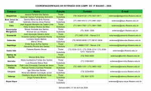 Reitoria: Rua do Rouxinol, nº 115, Imbuí, Salvador-BA. CEP: 41720-052. CNPJ: 10.724.903/0001-79 Telefone: (71) 3186-0001 | E-mail: gabinete@ifbaiano.edu.br