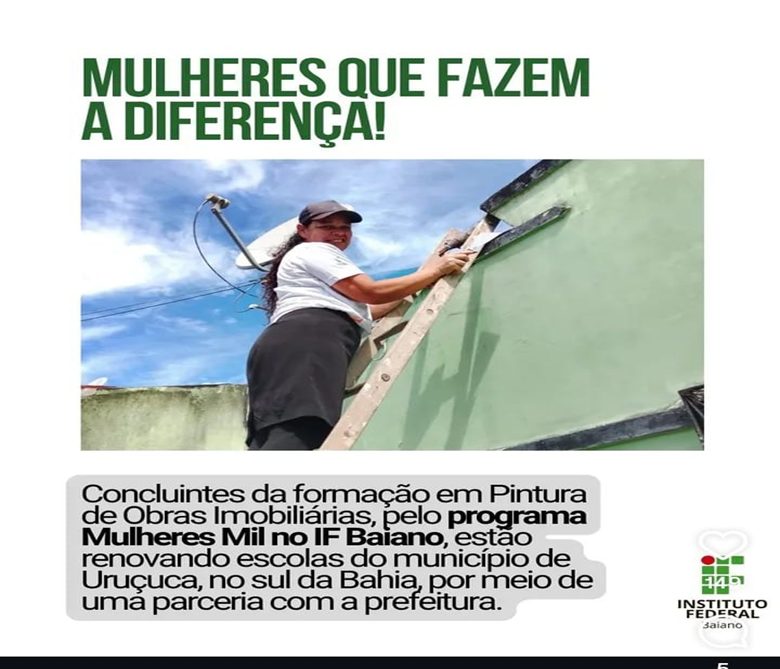 No município de Uruçuca, foi ofertado o curso de Pintora de Obras, uma formação que representa um importante avanço na ampliação das oportunidades profissionais para mulheres em áreas historicamente ocupadas majoritariamente por homens, como a construção civil.
