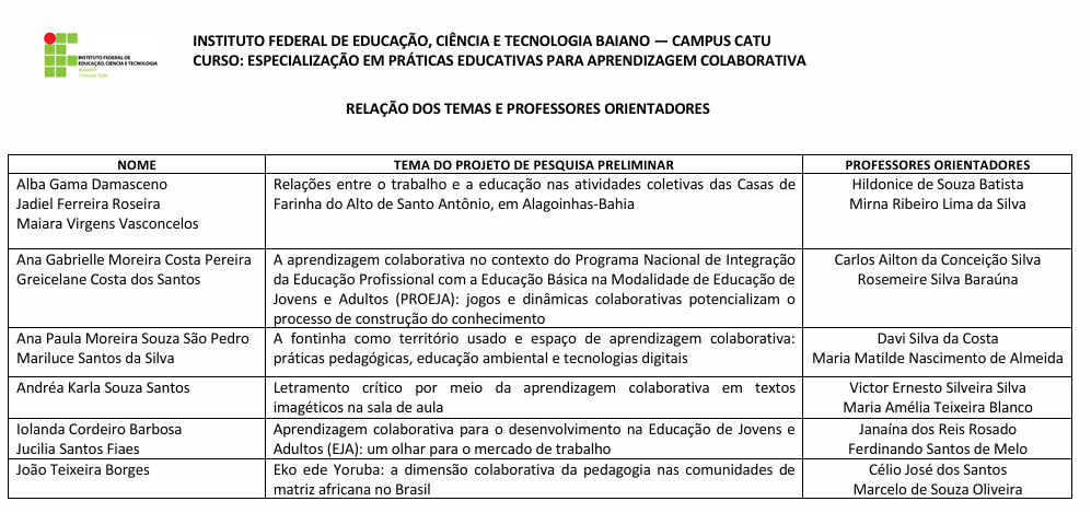 Especialização em Práticas Educativas para a Aprendizagem Colaborativa