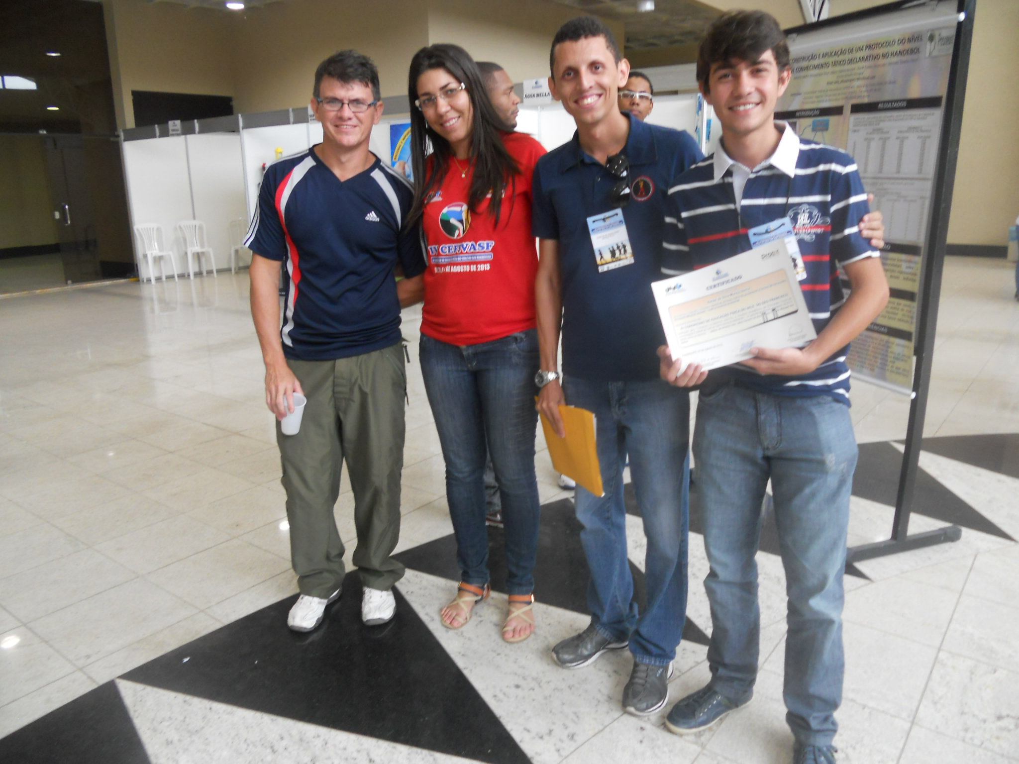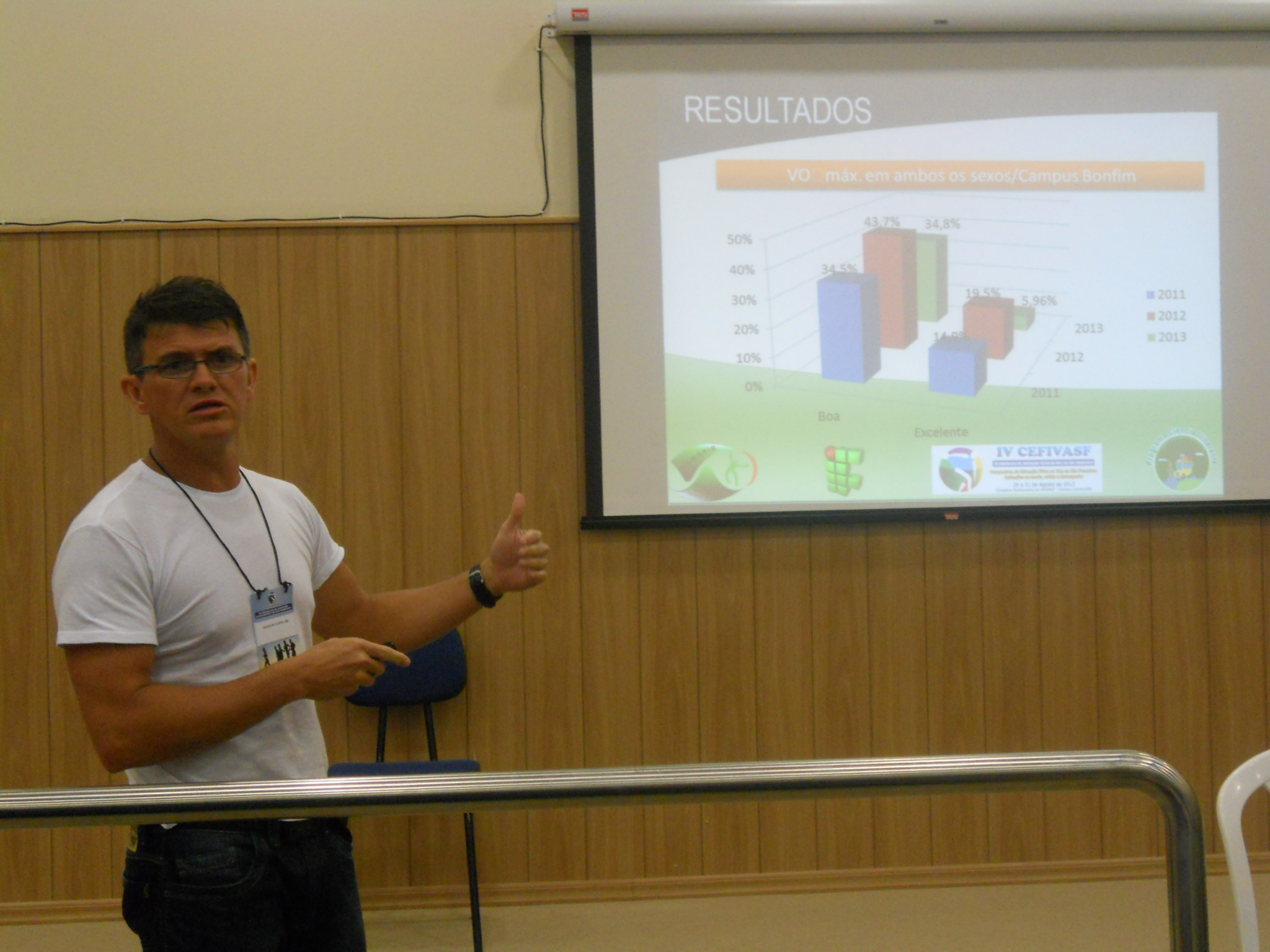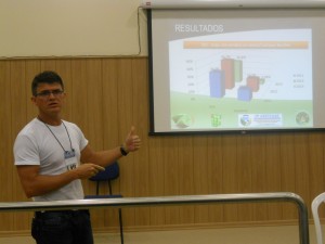 Jainy apresentou na modalidade oral o trabalho intitulado: “Reprodutibilidade de questionário para nível de atividade física e comportamentos de risco à saúde em escolares do ensino médio”, o Prof. Jadson apresentou “Composição corporal e níveis de aptidão física relacionados à saúde em escolares do ensino médio entre os anos 2011, 2012 e 2013”, também na modalidade oral, já Rafael apresentou “Níveis de aptidão física relacionados à saúde em escolares do Ensino médio/IF-Baiano – Campus Senhor do Bonfim”, na modalidade pôster.