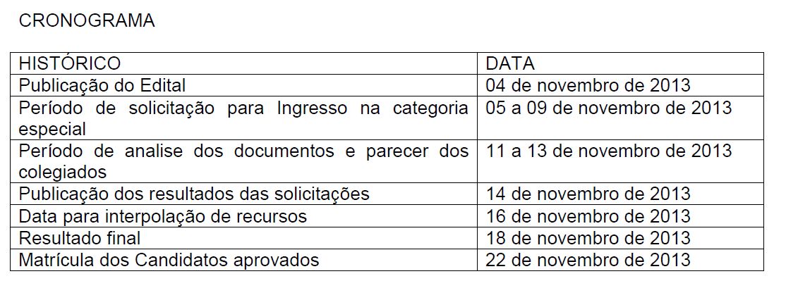 Para inscrever-se o candidato deverá formalizar sua solicitação presencialmente junto à Secretaria de Registros Acadêmicos (SRA) do campus no período de 05 a 09 de novembro de 2013.