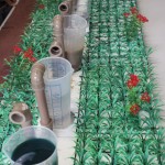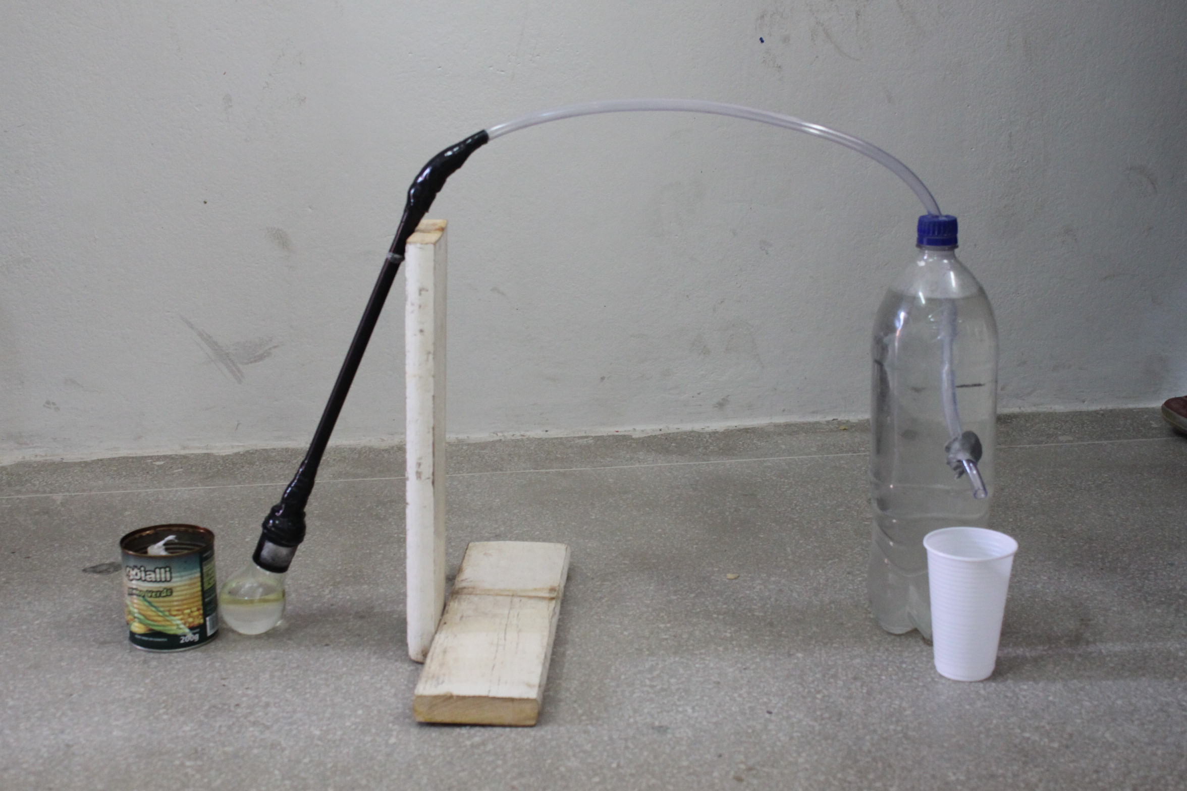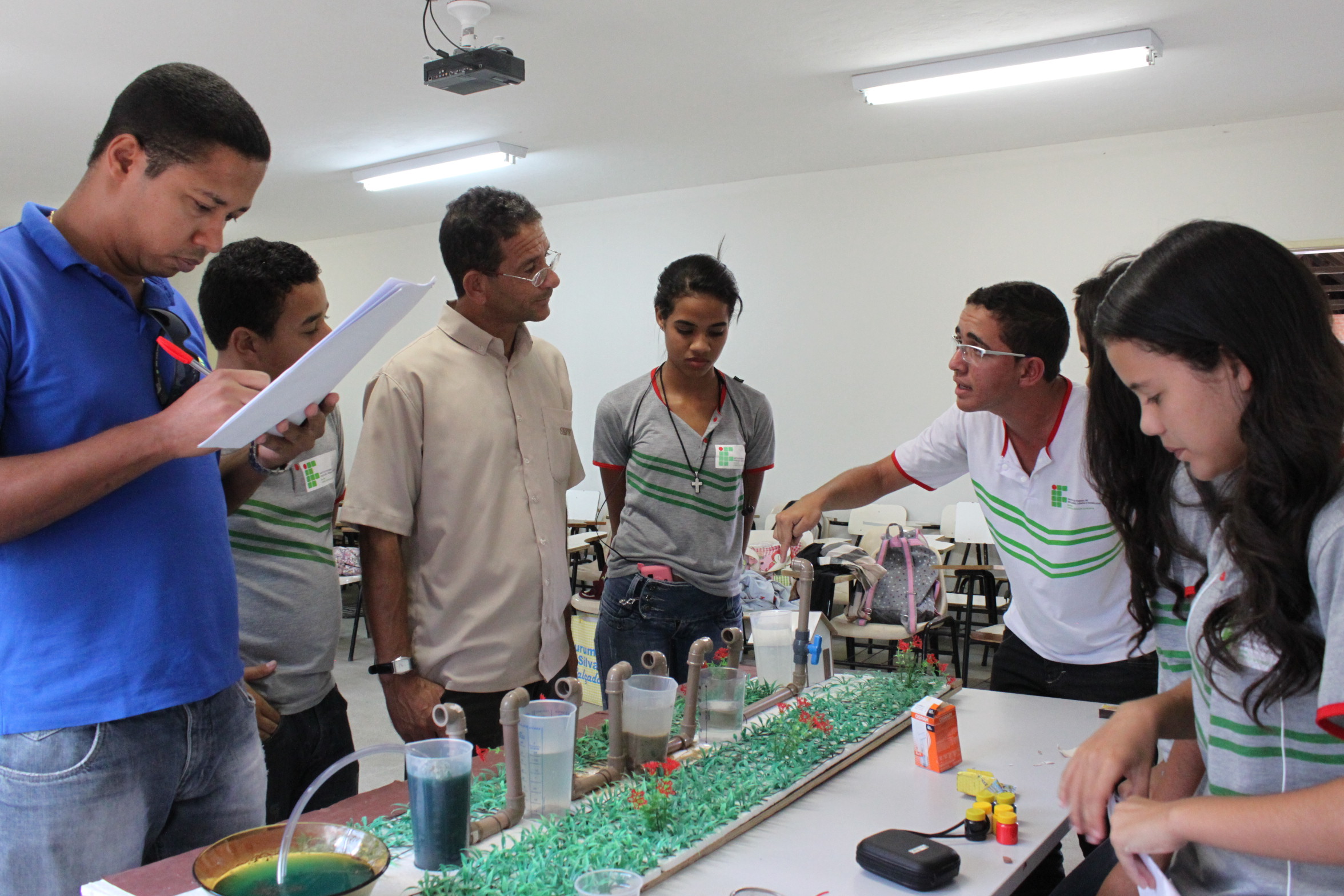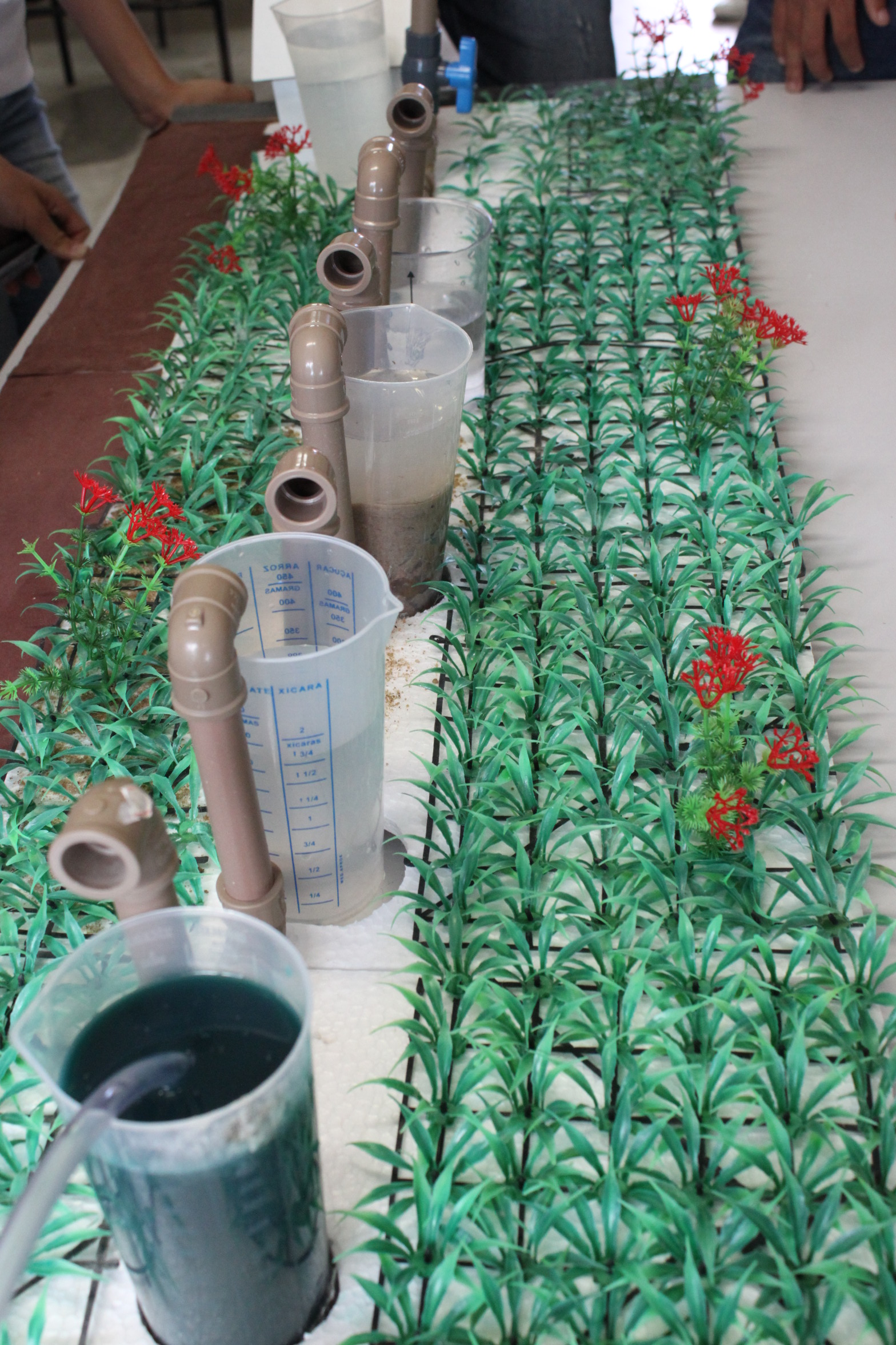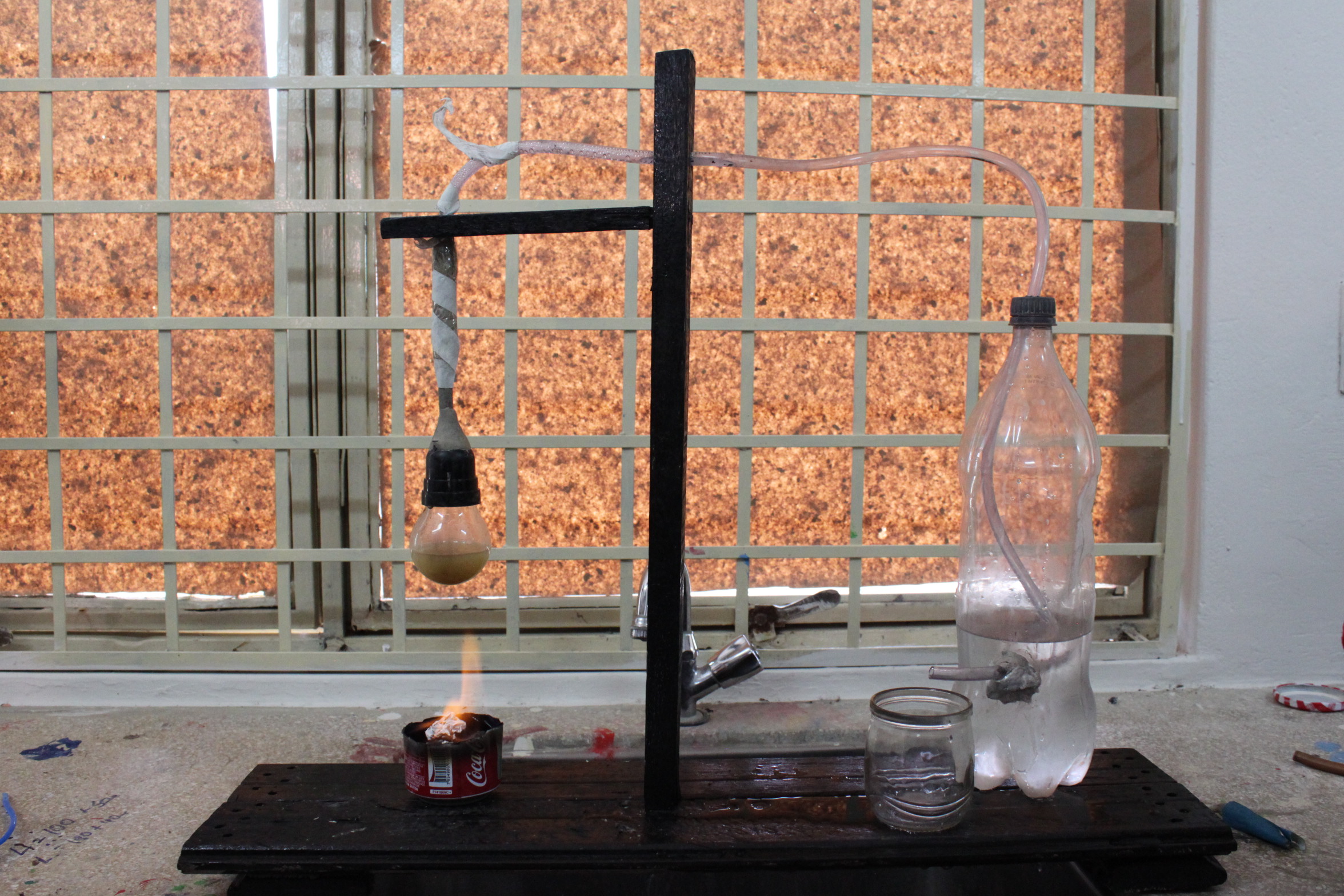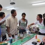 As turmas construíram modelos didáticos, com materiais de baixo custo, simulando destiladores, filtros artesanais e etc..
