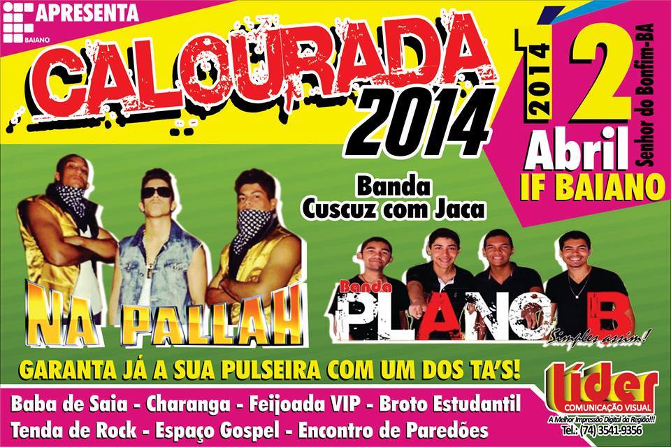 No próximo sábado (12), os alunos do Curso Técnico Integrado ao Ensino Médio do Campus promoverão a Calourada 2014. A Calourada é uma forma de integração entre os alunos veteranos e os que acabam de ingressar (calouros). Este ano o evento tem uma programação diversificada, para que haja uma maior contemplação de público. A programação musical vai de Gospel à MPB. O evento será realizado no Campus e dará início às 8:00h com término às 18:30h. É necessário obter ingresso, mais informações com os TA’s do Campus.