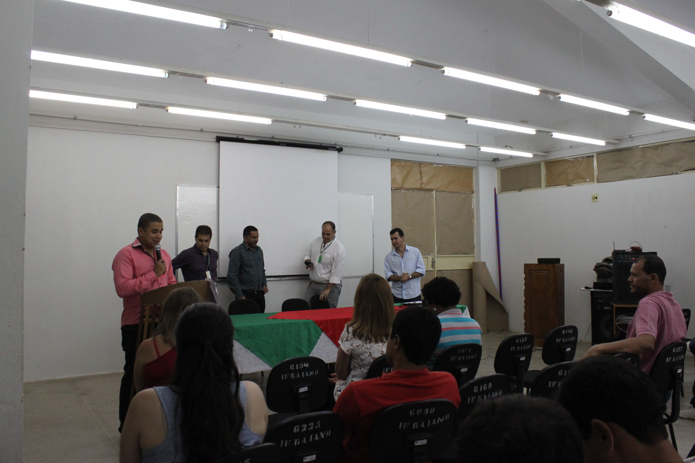 Cerimônia de abertura com o Coordenador do Curso de Pós-Graduação Lato-Sensu em Desenvolvimento Sustentável no Semiárido, o Coordenador Geral de Pós-Graduação do IF Baiano; o Pró-Reitoria de Pesquisa e Inovação, o Diretor Acadêmico e o Diretor Geral do IF Baiano Campus Senhor do Bonfim.