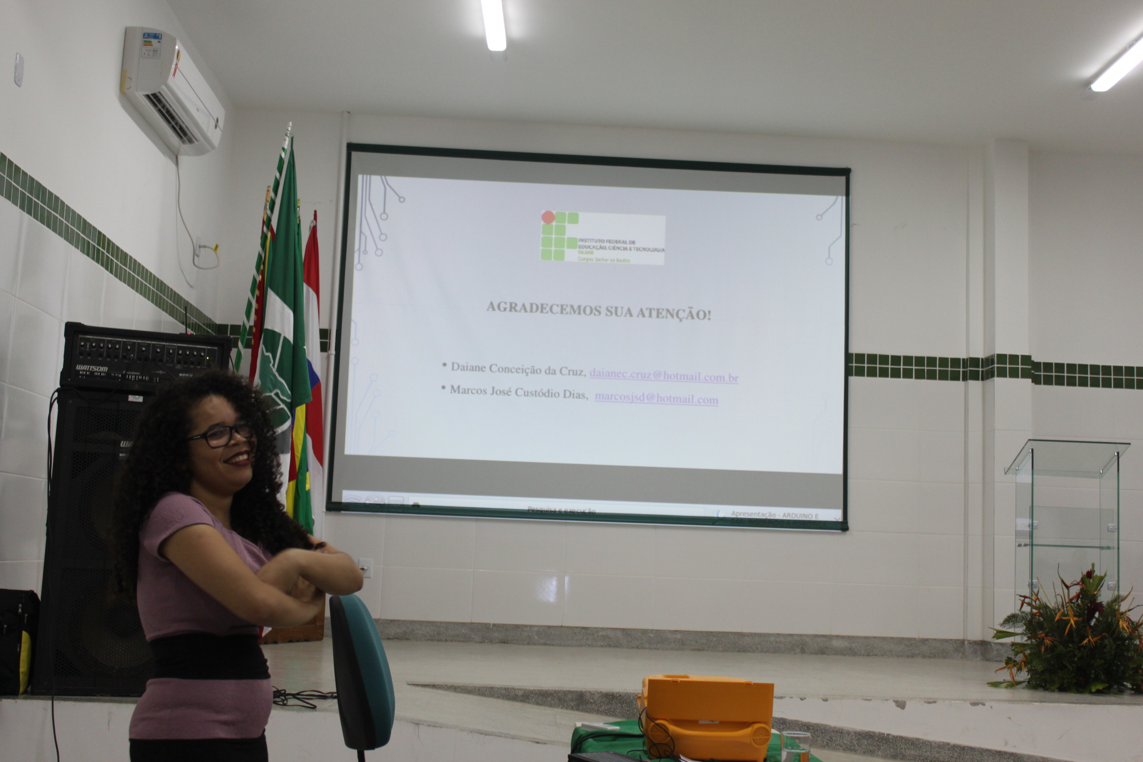 Às 20:00 horas do dia 16 de setembro de 2016, reuniu-se no Auditório do Instituto Federal de Educação, Ciência e Tecnologia Baiano (IF Baiano), no Campus Senhor do Bonfim, a Comissão Julgadora do Trabalho de Conclusão de Curso intitulado “Arduíno e S4A: Inserindo A Robótica Educacional No Ensino Médio, Estimulando o Raciocínio Lógico e o Pensamento Computacional” da aluna Daiane Conceição da Cruz, composta por: Profº Msc. Marcos José Custódio Dias (Orientador), Professor Efetivo da Licenciatura em Ciências da Computação do IF Baiano, Profº Msc. José Honorato Ferreira Nunes, Professor Efetivo da Licenciatura em Ciências da Computação do IF Baiano, e Msc. Edeil Reis do Espírito Santo, Técnico em Assuntos Educacionais do IF Baiano.
