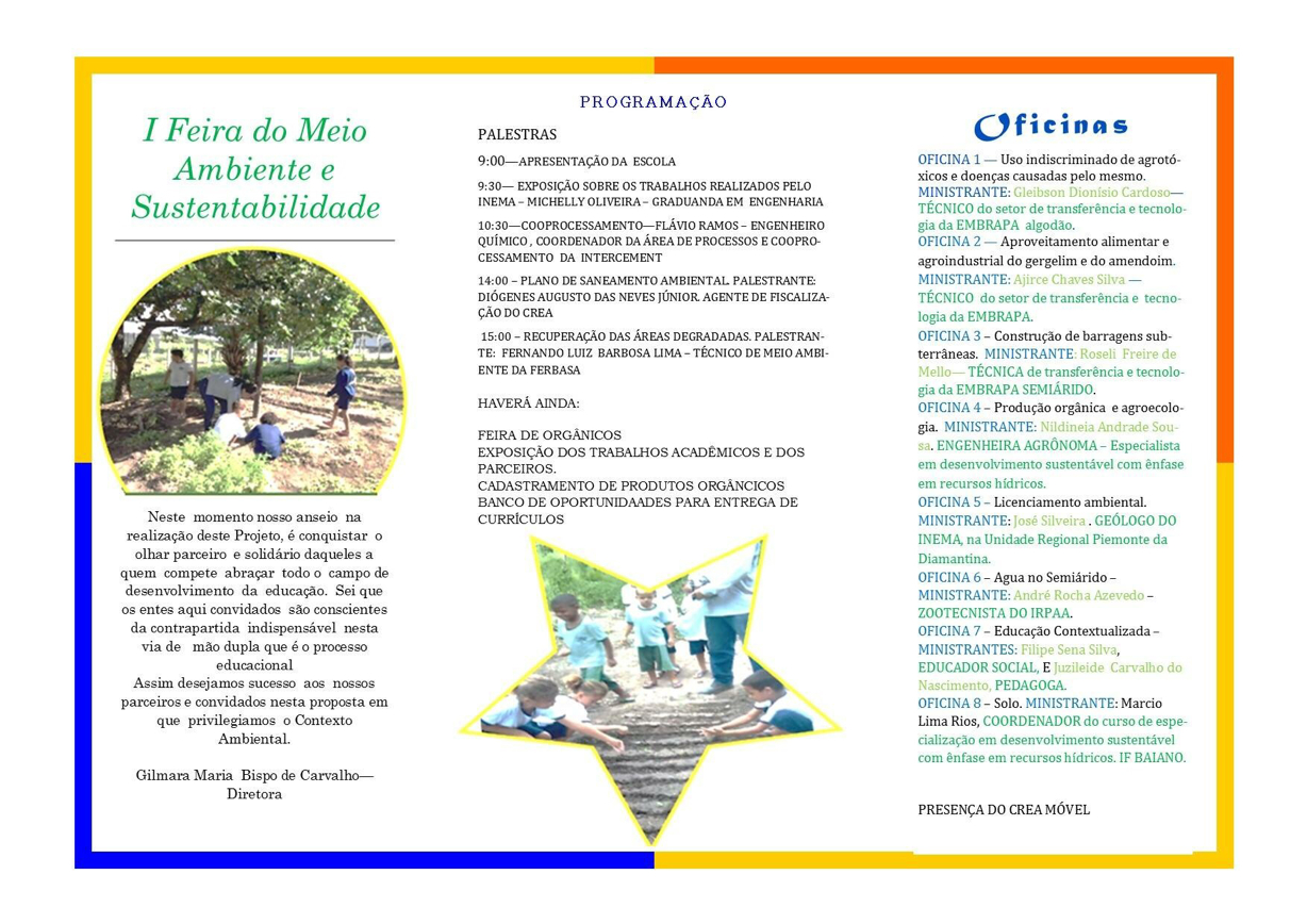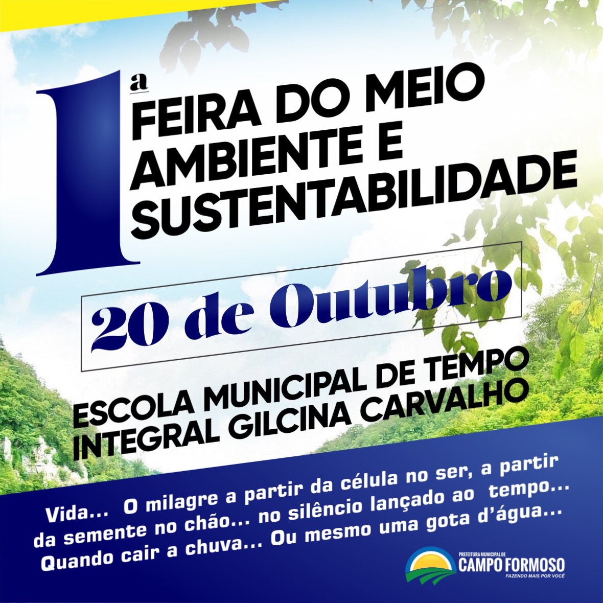 Acontece amanhã, 20 de outubro, a I Feira do Meio Ambiente e Sustentabilidade da Escola Municipal de Tempo Integral Gilcina Carvalho, em Campo Formoso.