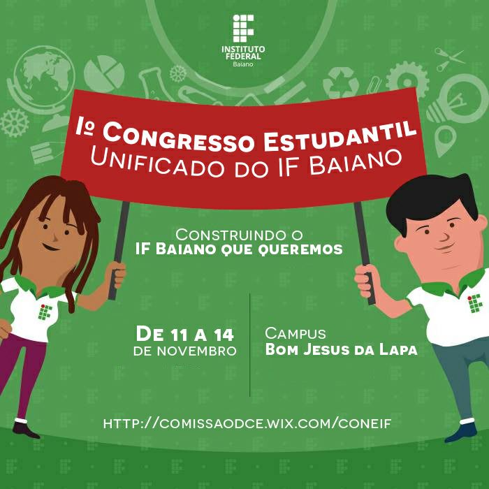 Entre os dias 11 a 14 de Novembro os estudantes do Instituto Federal de Educação, Ciência e Tecnologia Baiano (IF Baiano) estarão reunidos no Campus Bom Jesus da Lapa-BA a 796 km de Salvador, para formação do Diretório Central dos Estudantes (DCE).