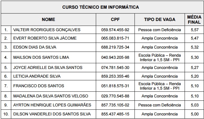 3ª CONVOCAÇÃO DE MATRÍCULA PARA VAGAS REMANESCENTES – INFORMÁTICA (1)