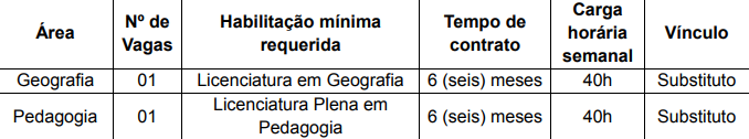 O IF Baiano de Senhor do Bonfim torna pública a realização de Processo Seletivo Simplificado, objetivando a contratação de Professor Substituto para Licenciados em Geografia e Pedagogia.