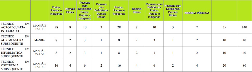 Para o Campus Senhor do Bonfim estão sendo ofertadas as seguintes vagas.