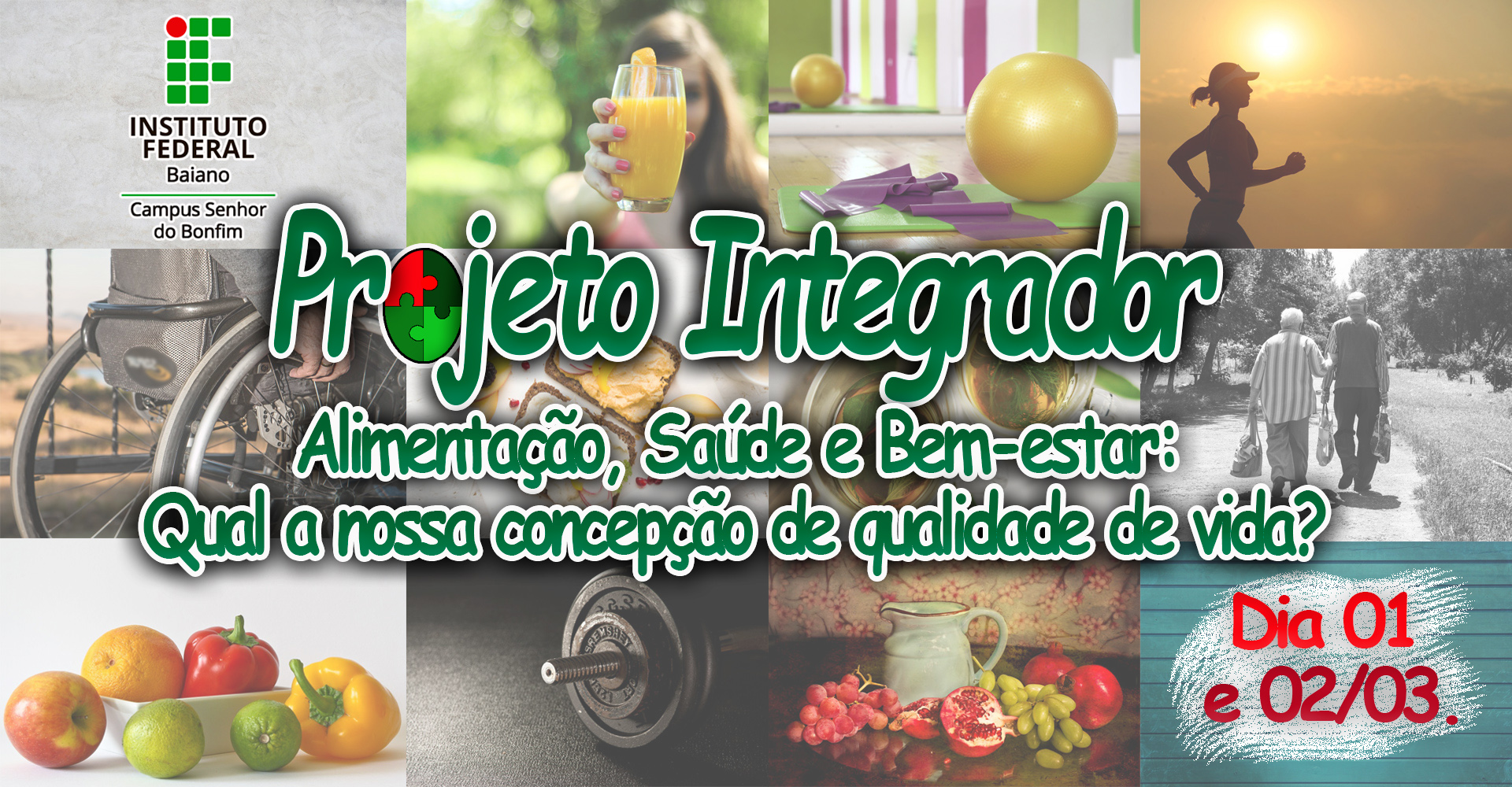 O Instituto Federal de Educação, Ciência e Tecnologia Baiano – IF Baiano, Campus Senhor do Bonfim, convida a comunidade acadêmica de nossa região para prestigiar as atividades desenvolvidas pelos alunos do Curso Técnico em Agropecuária Integrado ao Ensino Médio referentes ao Projeto Integrador de temática Alimentação, Saúde e Bem-Estar: Qual a nossa concepção de qualidade de vida?