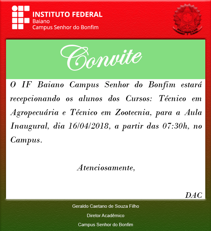 Instituto Federal de Educação, Ciência e Tecnologia Baiano – Campus Senhor do Bonfim