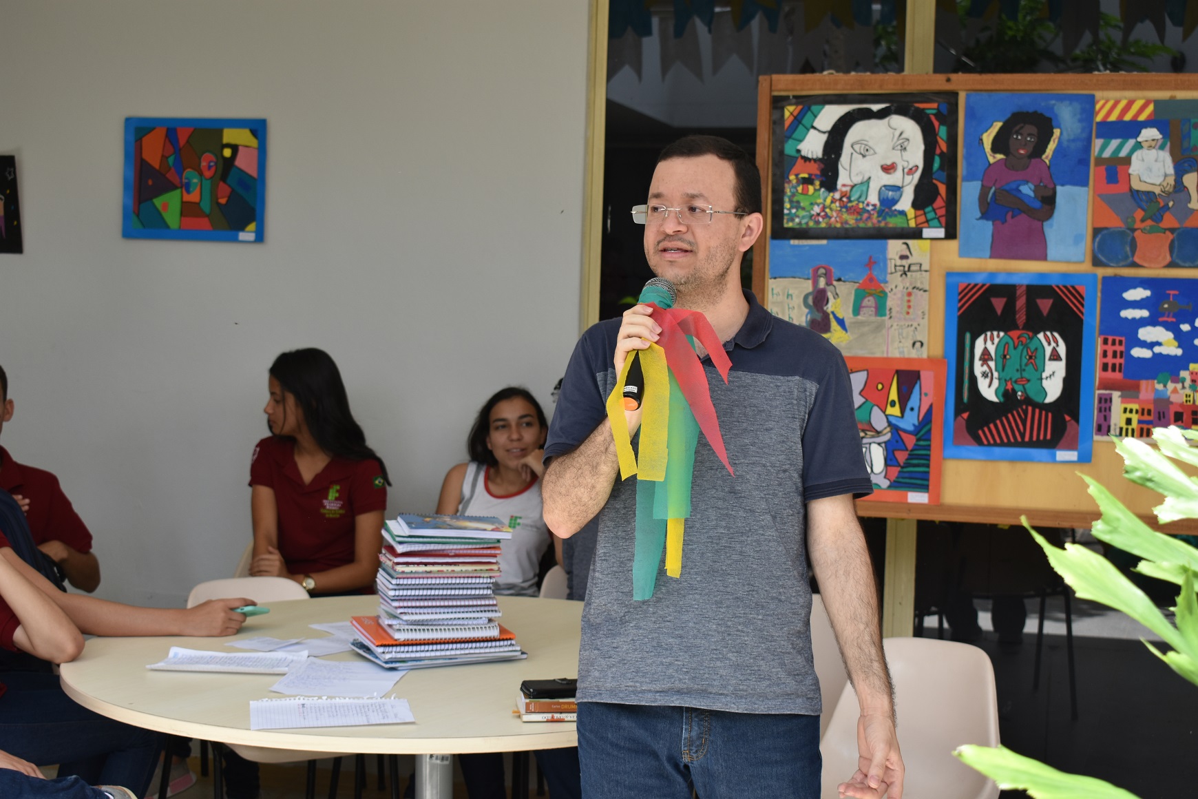 Logo após, o diretor Acadêmico, prof. Geraldo Caetano de Souza Filho, ressaltou a necessidade de o estudante ocupar a biblioteca para o seu desenvolvimento intelectual. Com o uso dos celulares e outros instrumentos tecnológicos, os jovens trocaram a leitura presencial por aquela realizada em dispositivos móveis, como smartphones ou tablets. “Nada substitui todo o conhecimento que vocês podem adquirir aqui com outros colegas, compartilhando informações que só conseguimos se estivermos corpo a corpo. Todo esse espaço foi pensado, arrumado em prol de vocês alunos, servidores, de todos. Precisa ser mais visto, mais visitado”, enfatiza Geraldo Caetano.