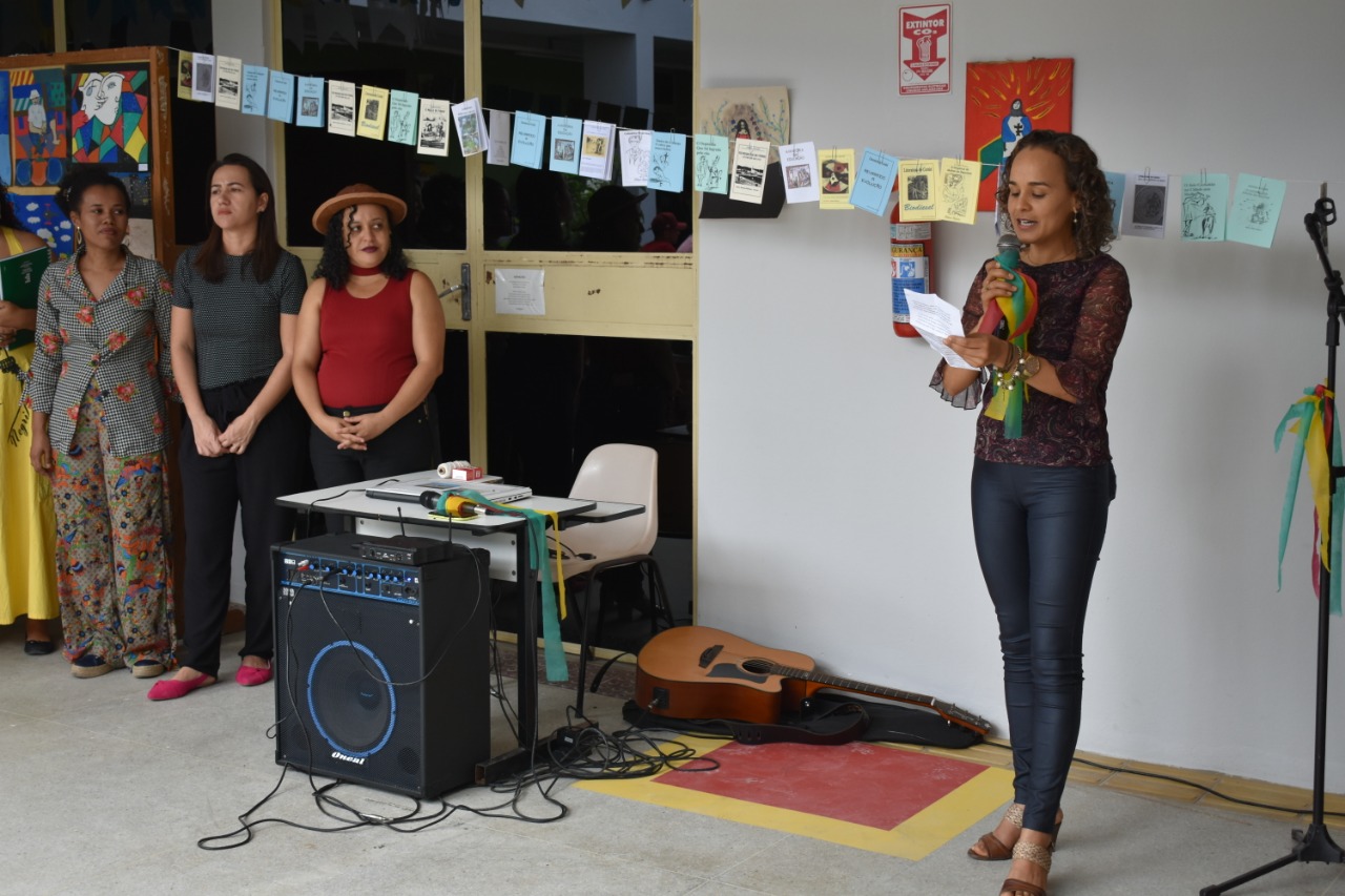 No momento cultural, a servidora Jigriola Duarte recita um poema de sua autoria que fez especialmente para o evento. A temática é Leitura e Poéticas do Sertão.