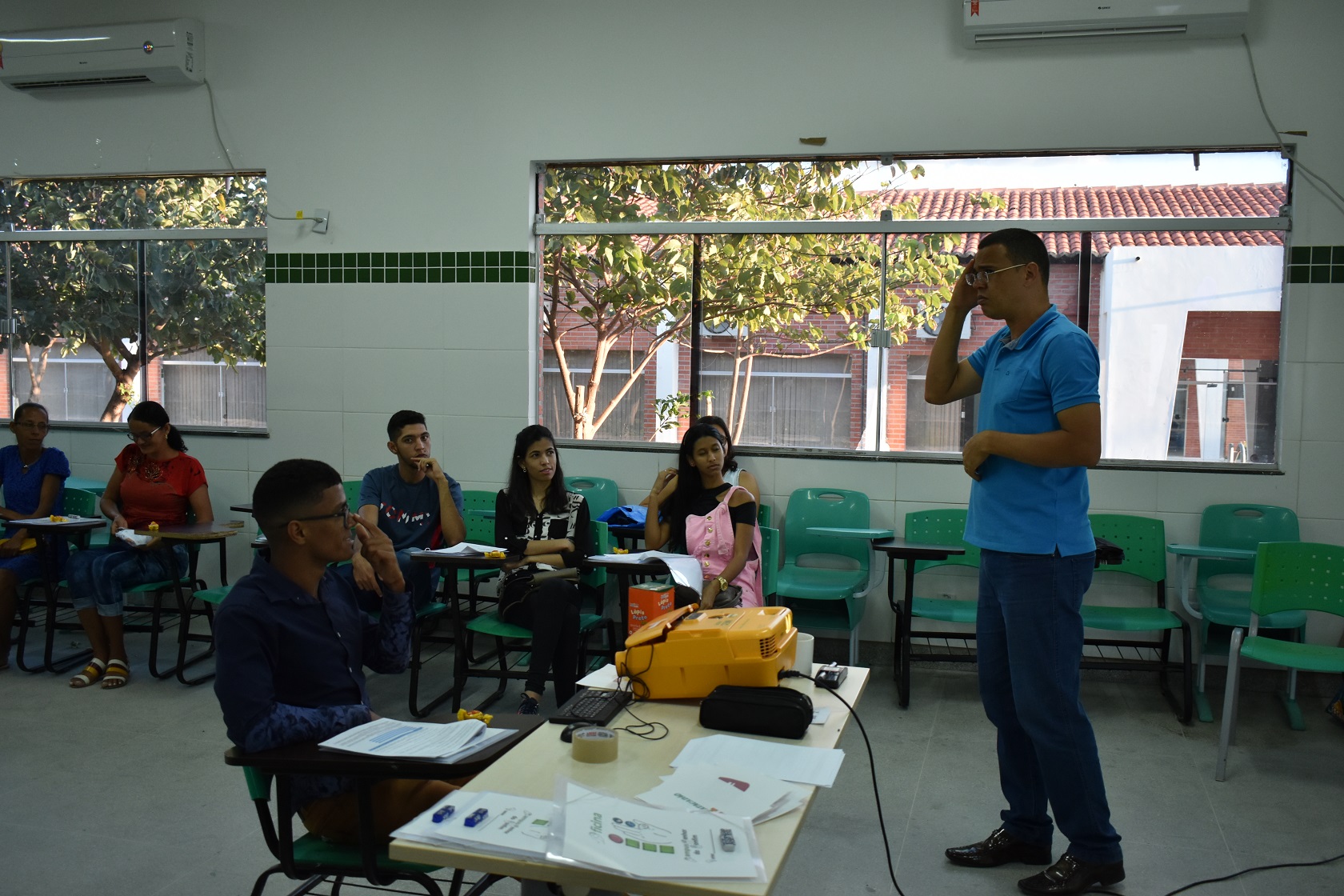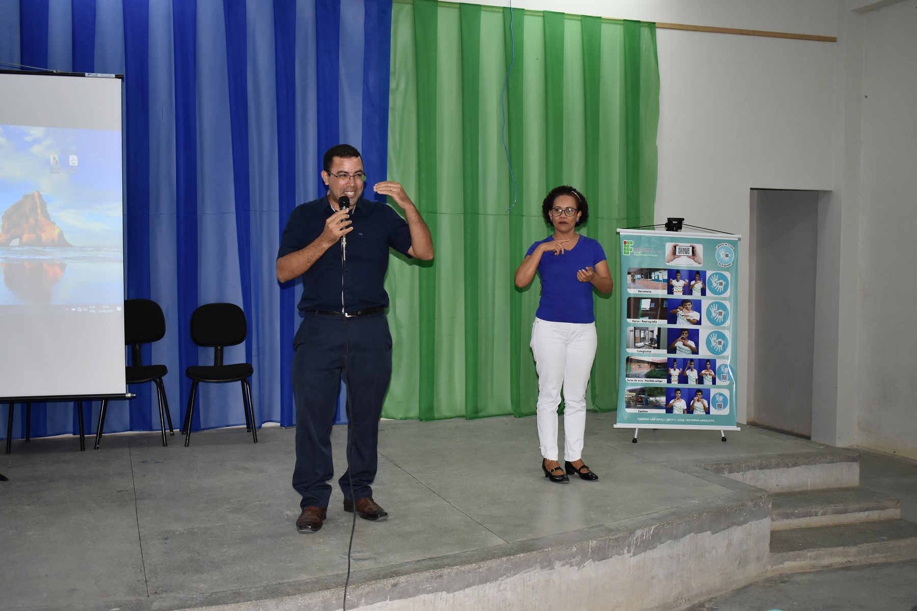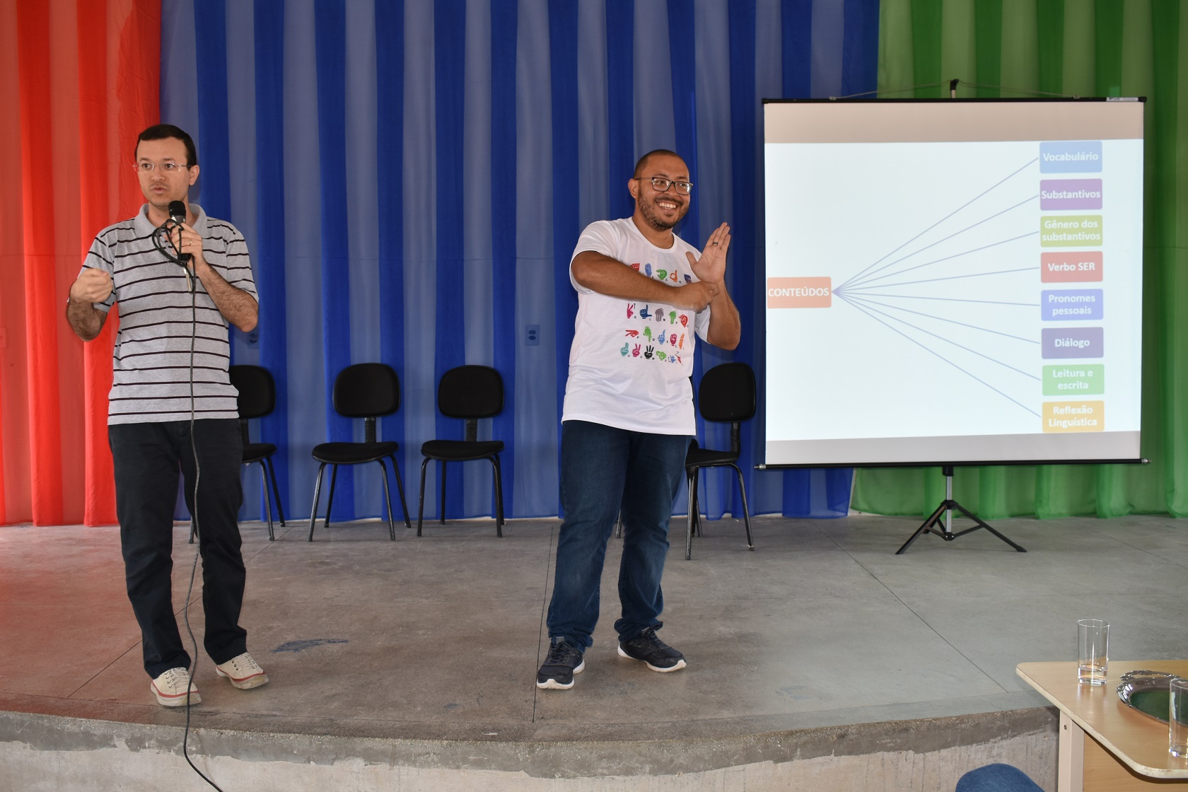 Logo após, o professor de Língua Portuguesa e Literatura, Radamés Benevides de Melo, apresentou o projeto de extensão “ensino de Português como 2ª língua para surdos”, que já está em vigência desde o mês de julho de 2019, com aulas às quintas-feiras.