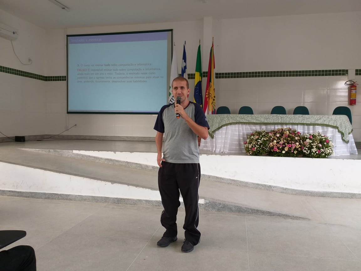 A programação de quinta-feira (06), iniciou com a fala de boas vindas do Diretor Geral do campus, Professor Alaécio Ribeiro. Os professores Silas Machado e Ártus Bolzanni, coordenadores dos cursos em Alimentos e Informática, respectivamente, apresentaram pontos importantes de ambos os cursos aos novos alunos, além de apresentarem o corpo docente presente.