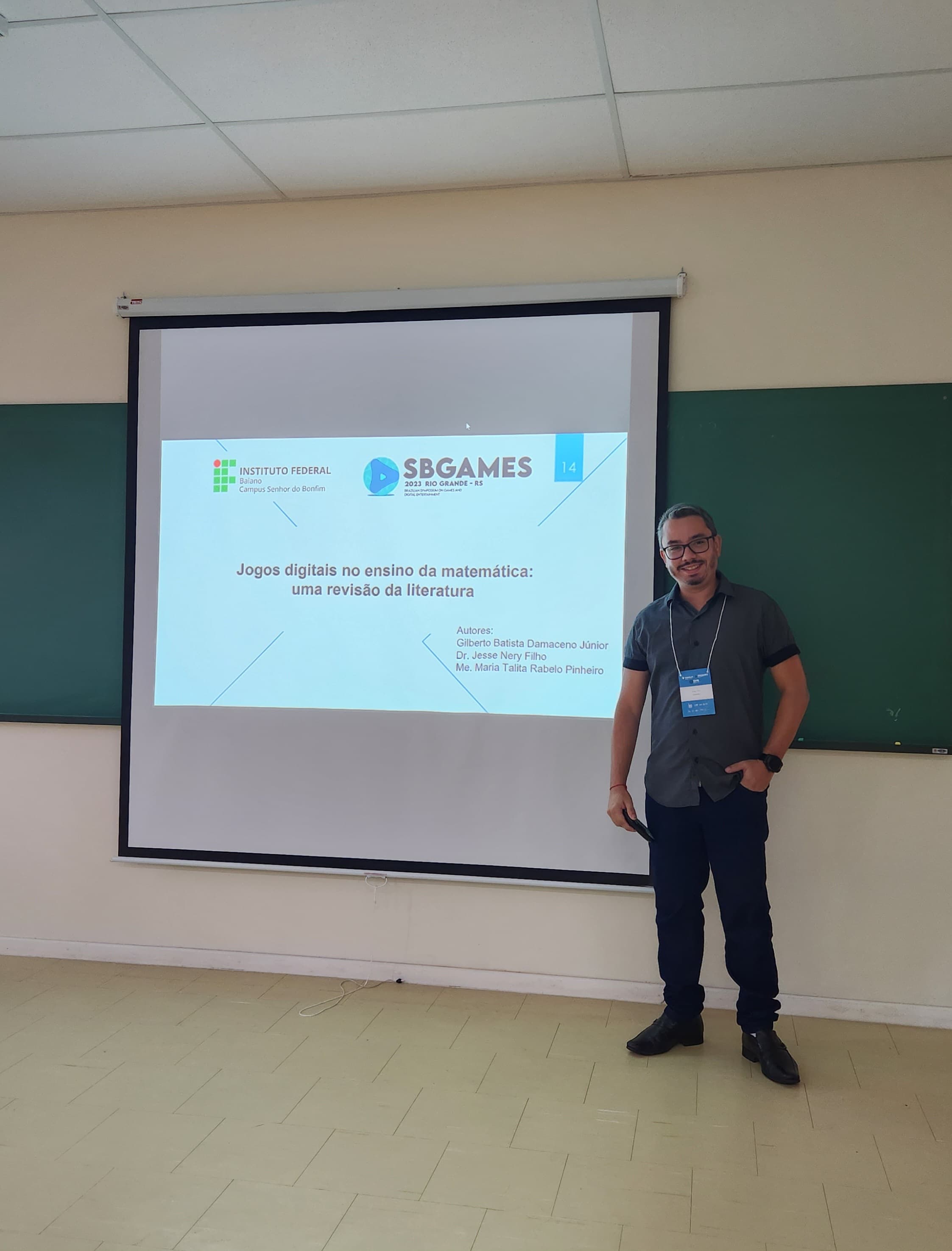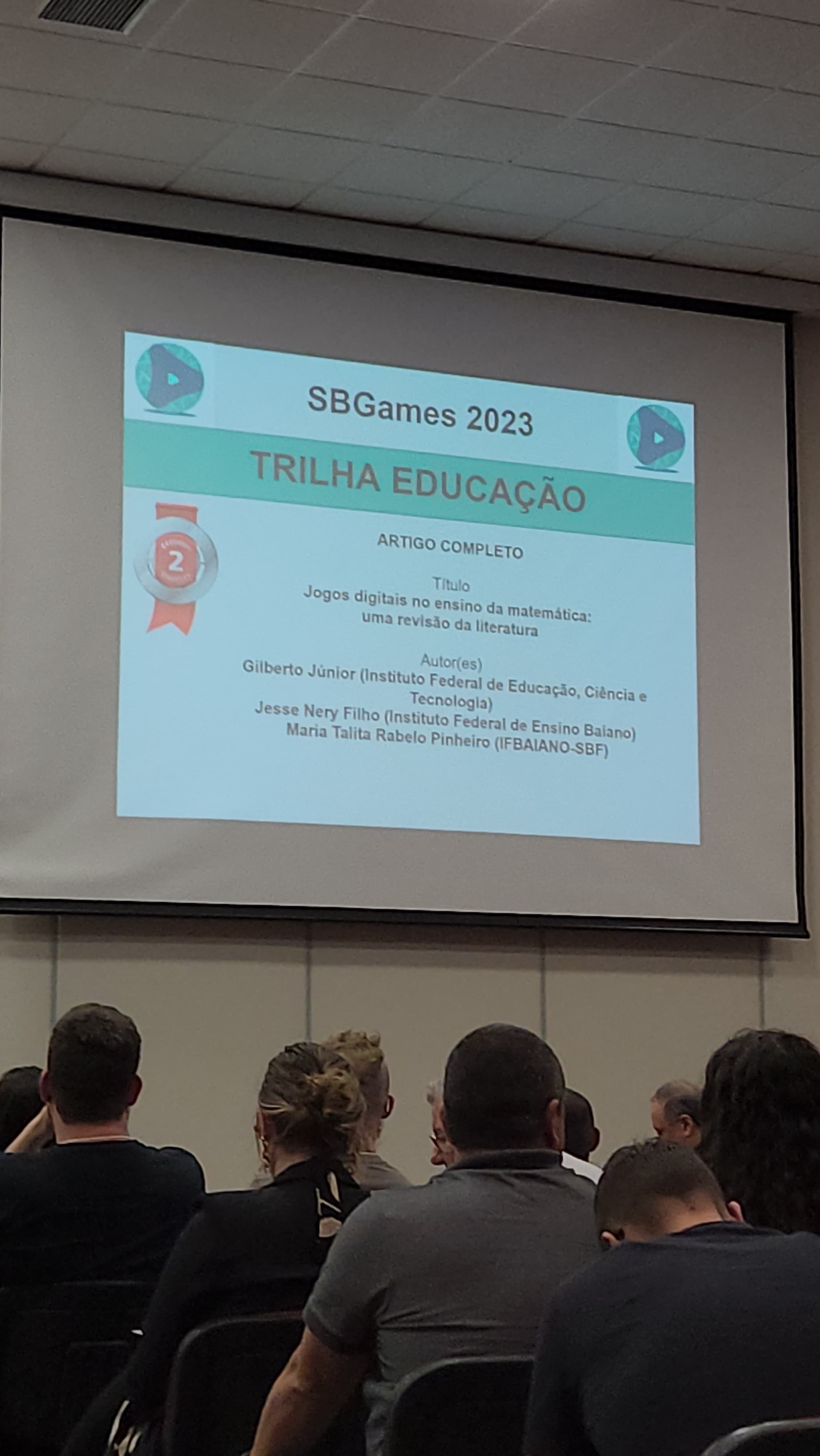 Na 22ª edição do SBGames – Simpósio Brasileiro de Jogos e Entretenimento Digital, o principal evento e pioneiro em Jogos e Entretenimento Digital no Brasil que aconteceu nos dias 6 a 11 de novembro em Rio Grande – RS, o Professor Dr. Jesse Nery Filho apresentou um artigo produzido por ele, pelo seu orientando Gilberto Damaceno Júnior e pela Professora Mestre Maria Talita Rabelo Pinheiro. O artigo intitulado “Jogos digitais no ensino da matemática: uma revisão da literatura” foi apresentado na trilha de jogos e educação e recebeu o prêmio de segundo melhor artigo nessa categoria dentre os mais de 60 outros trabalhos de todo o Brasil.