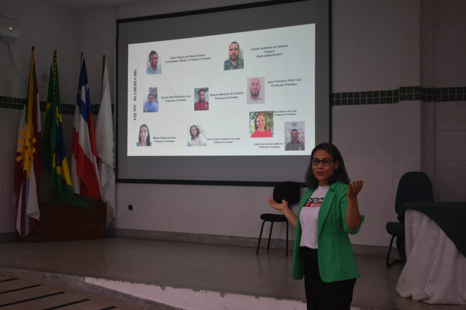 A solenidade de abertura foi presidida pela professora Calila Teixeira (ex-coordenadora do programa). Além das alunas, estiveram presentes a professora Lilian Teixeira – diretora de Ensino, representando o diretor-geral; Taciana Granja, secretária de Assistência Social do município; Pedro Rogério de Oliveira Santos (técnico em Alimentos), que também é coordenador do programa no campus e professor do curso; Cíntia Borges de Almeida (ex-aluna do curso), o servidor Dustin Justiniano Fonseca (função administrativo-acadêmica) e demais servidores.