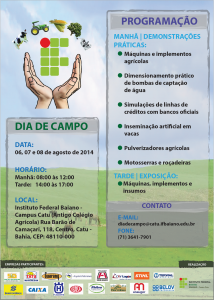 O Campus Catu promove, de 06 à 08 de agosto de 2014, o “Dia de Campo”. O evento acontecerá durante a 12ª Feira dos Municípos e 3ª Mostra de Iniciação Científica da Bahia (FEMMIC). A Feira está entre os maiores eventos científicos da Educação Básica no país e esta edição traz como tema: Ciência e desenvolvimento para a comunidade.