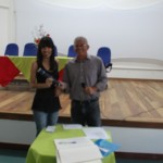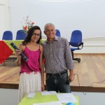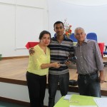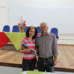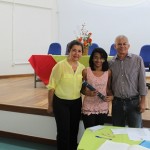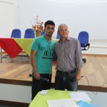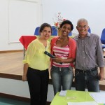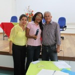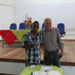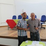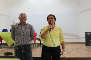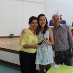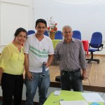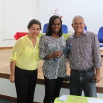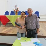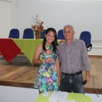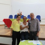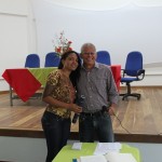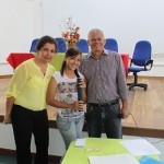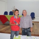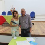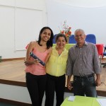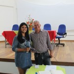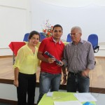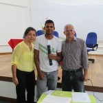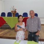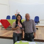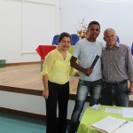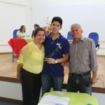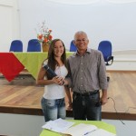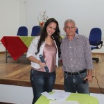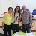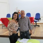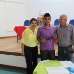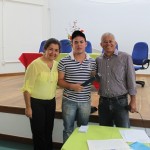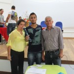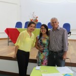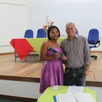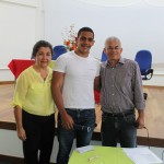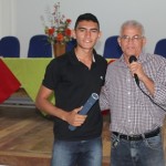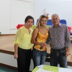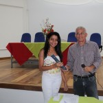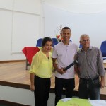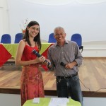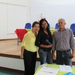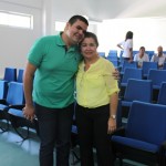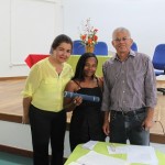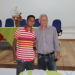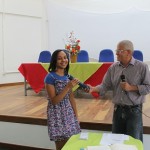 O Diretor Geral, Osvaldo Santos de Brito e a Professora de Matemática, Débora Sodré, parabenizam os concluintes em Cerimônia celebrada no Auditório do Novo Complexo Administrativo e Pedagógico.