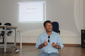 O Professor de Ciências Agrárias, Carlindo S. Rodrigues, apresenta as ações da Propes e da Proex à Comunidade do Campus Catu (Foto: Ascom Catu)