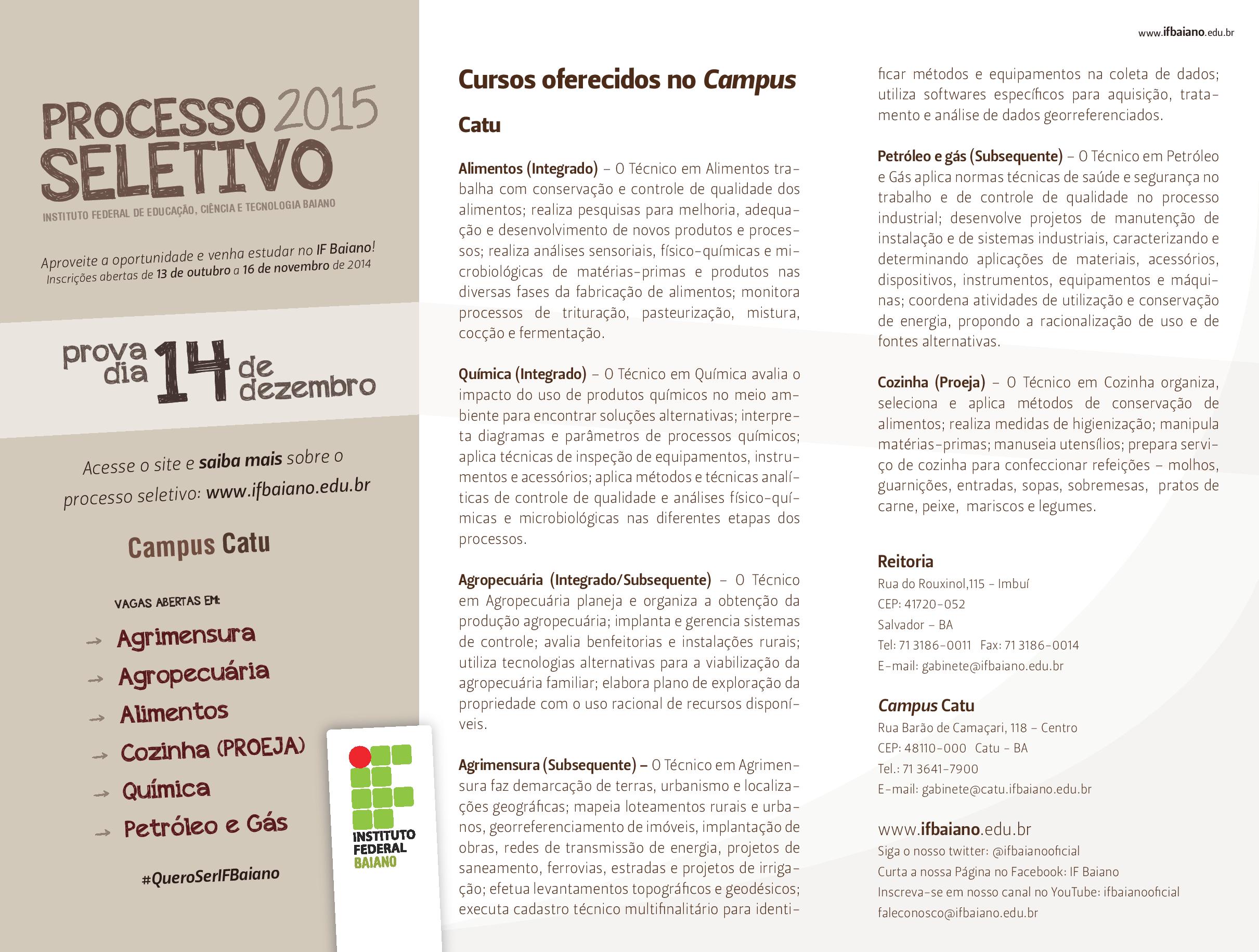 Instituto Federal de Educação, Ciência e Tecnologia Baiano – Campus Catu