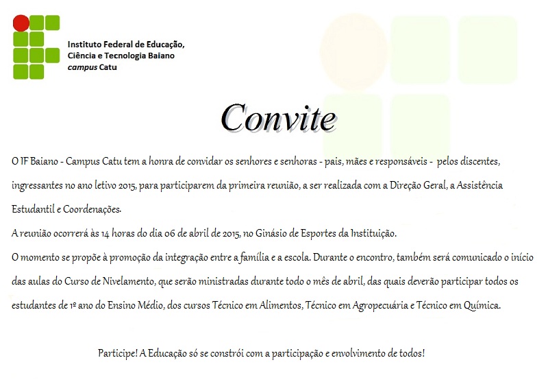 Instituto Federal de Educação, Ciência e Tecnologia Baiano – Campus Catu