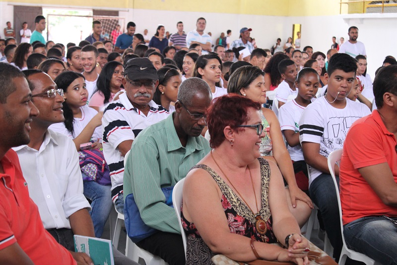 Servidores, estudantes e familiares participam da aula inaugural para o ano letivo 2016, realizada no Ginásio de Esportes do IF Baiano - Campus Catu.