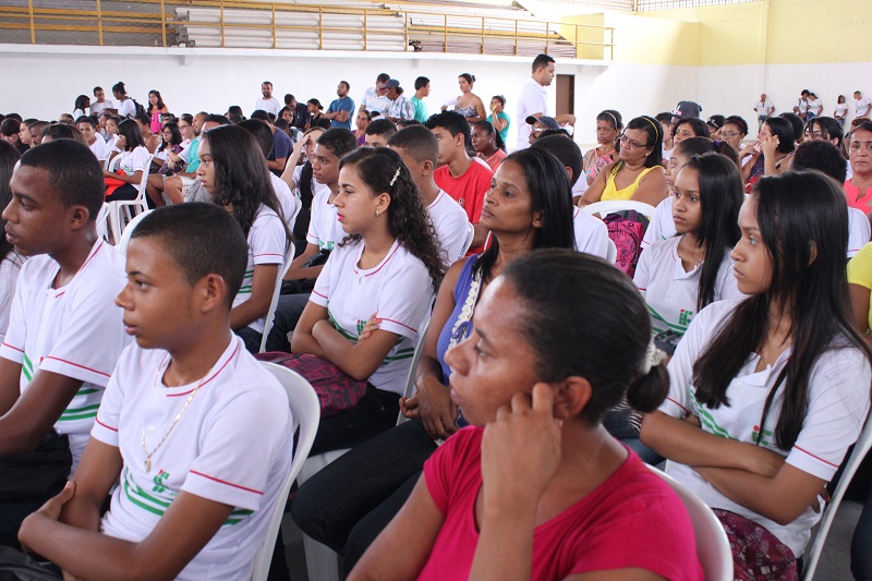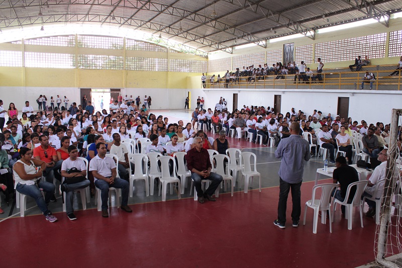 Servidores, estudantes e familiares participam da aula inaugural para o ano letivo 2016, realizada no Ginásio de Esportes do IF Baiano - Campus Catu.