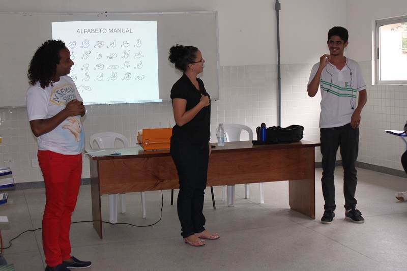 Além dos estudantes, também participaram do evento as docentes da Instituição, Aline Porto (Professora de Libras), Alexandra Carvalho (Coordenadora do Curso de Licenciatura em Química do Campus Catu) e os professores convidados, Karla Patrícia Costa (Diretora da Escola Municipal Professor Raimundo Mata) e Alisson Amorim (Tradutor e Intérprete de Língua de Sinais).