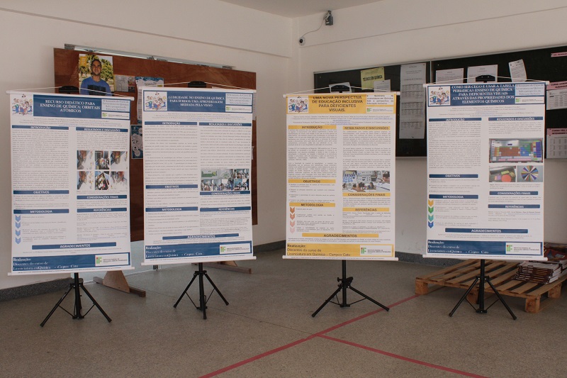 Após o seminário, ocorreram duas oficinas educativas, incluindo o uso do Braille e, de recursos táteis no processo de ensino, ministradas pela professora Fernanda P. Santos, do Campus Guanambi e a Iniciação em Libras, ministrada pela servidora do Campus Juliana N. Schmidt, além de exposição de materiais didáticos de Química – MOMADIQUI – sob a perspectiva de educação inclusiva, confeccionados pelos discentes do Curso de Licenciatura em Química.