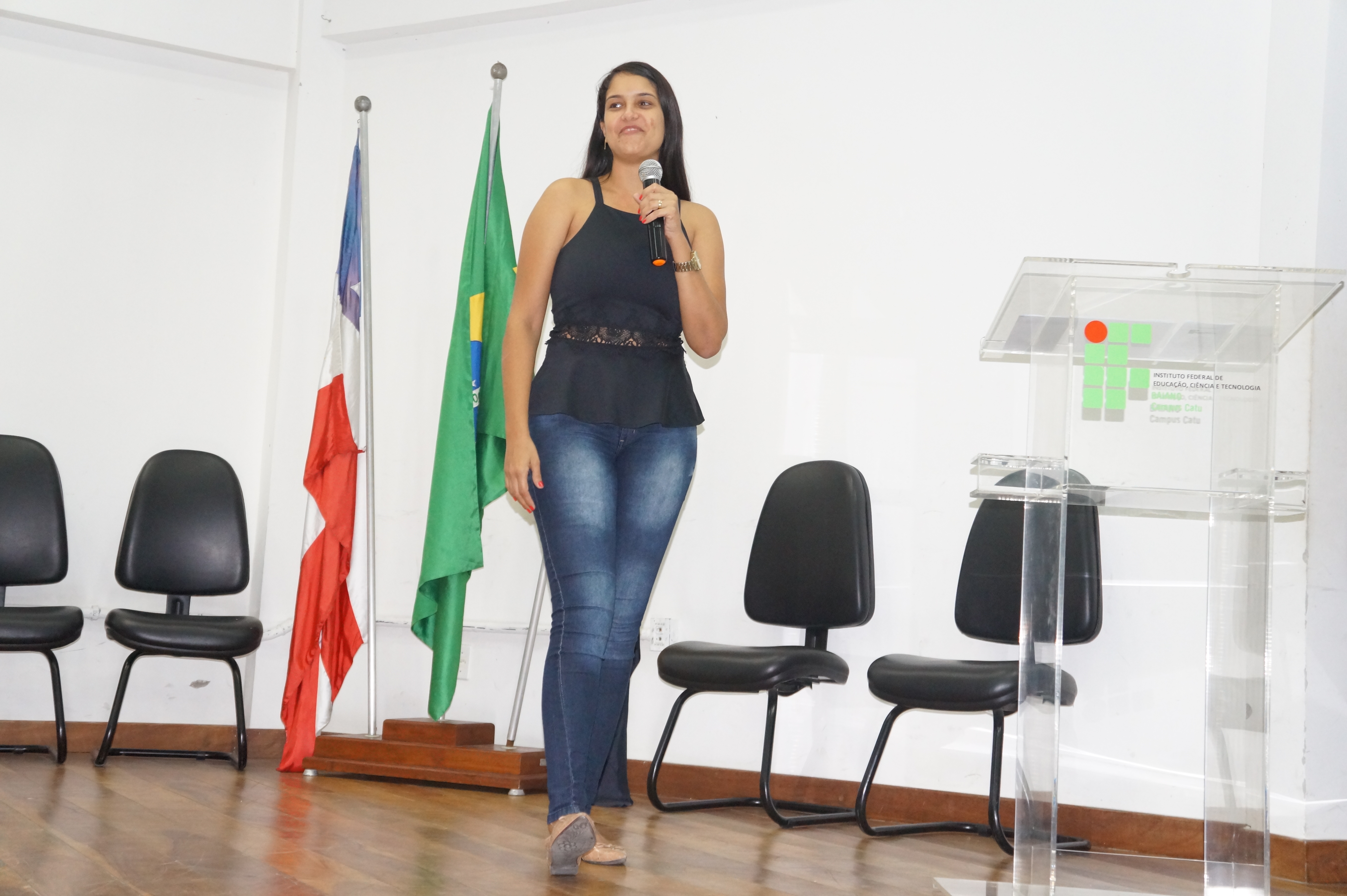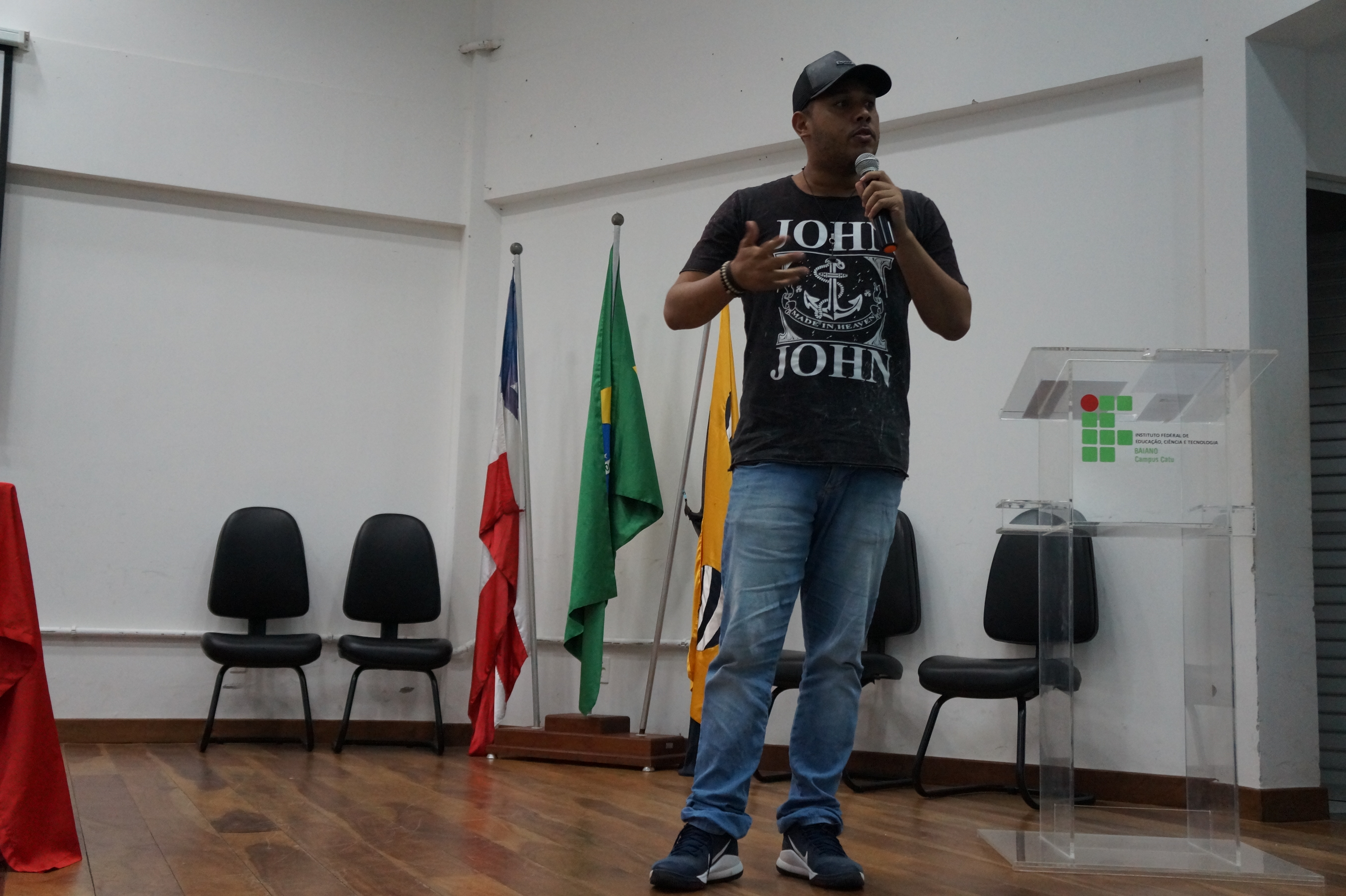 Encerrada a apresentação, os estudantes do curso de ADS se dirigiram para a sala VI a fim de conversarem com o seu coordenador Marcos Camada, os estudantes do Técnico em Cozinha na modalidade EJA permaneceram no pátio e os estudantes do curso de Licenciatura em Química retornaram ao auditório onde conversaram um pouco com seu coordenador André Fazolo, assistiram a fala motivadora de Fabrina Oliveira, ex-aluno do curso de Química, receberam orientações dos estudantes que compõem o Diretório Acadêmico e assistiram a palestra da Professora Doutora Bárbara Carine Pinheiro da Anunciação cujo tema era “E quem disse que não existem cientistas negros e negras?”