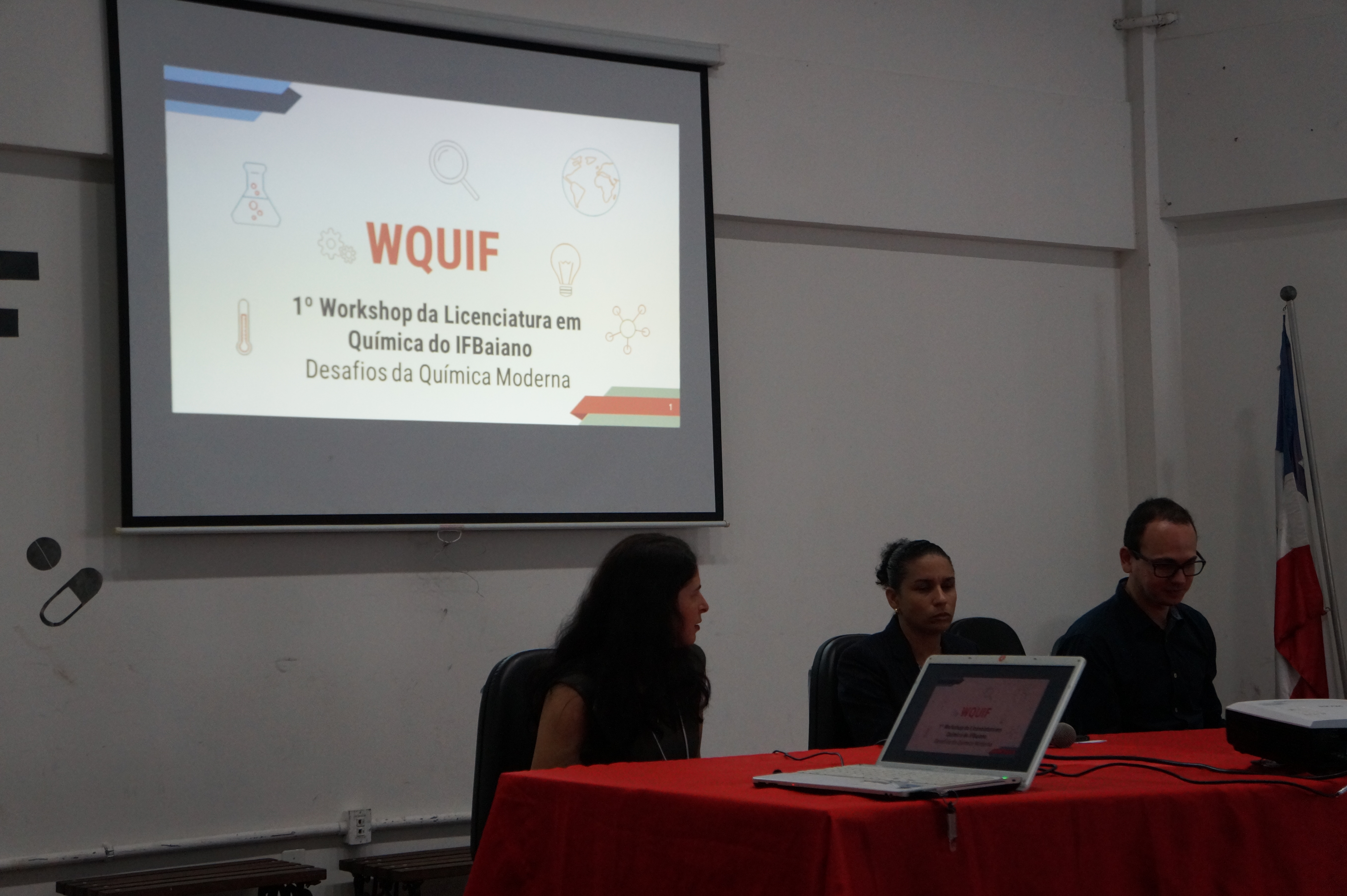 Na manhã de terça-feria, 16 de abril de 2019, no auditório do pavilhão de aulas II do Instituto Federal Baiano campus Catu, se iniciou o 1º Workshop da Licenciatura em Química do Instituto Federal Baiano campus Catu: Desafios da Química Moderna, organizado pelos formandos da turma 2018.2 Amanda Santos, Daiane Vasconcelos, Mônica Nascimento, Ismirna Israelle, Jönhenes Oliveira, Mylena Paiva e Thainá Souza sob a supervisão dos docentes Fatima Sanches e Antônio Leonan.
