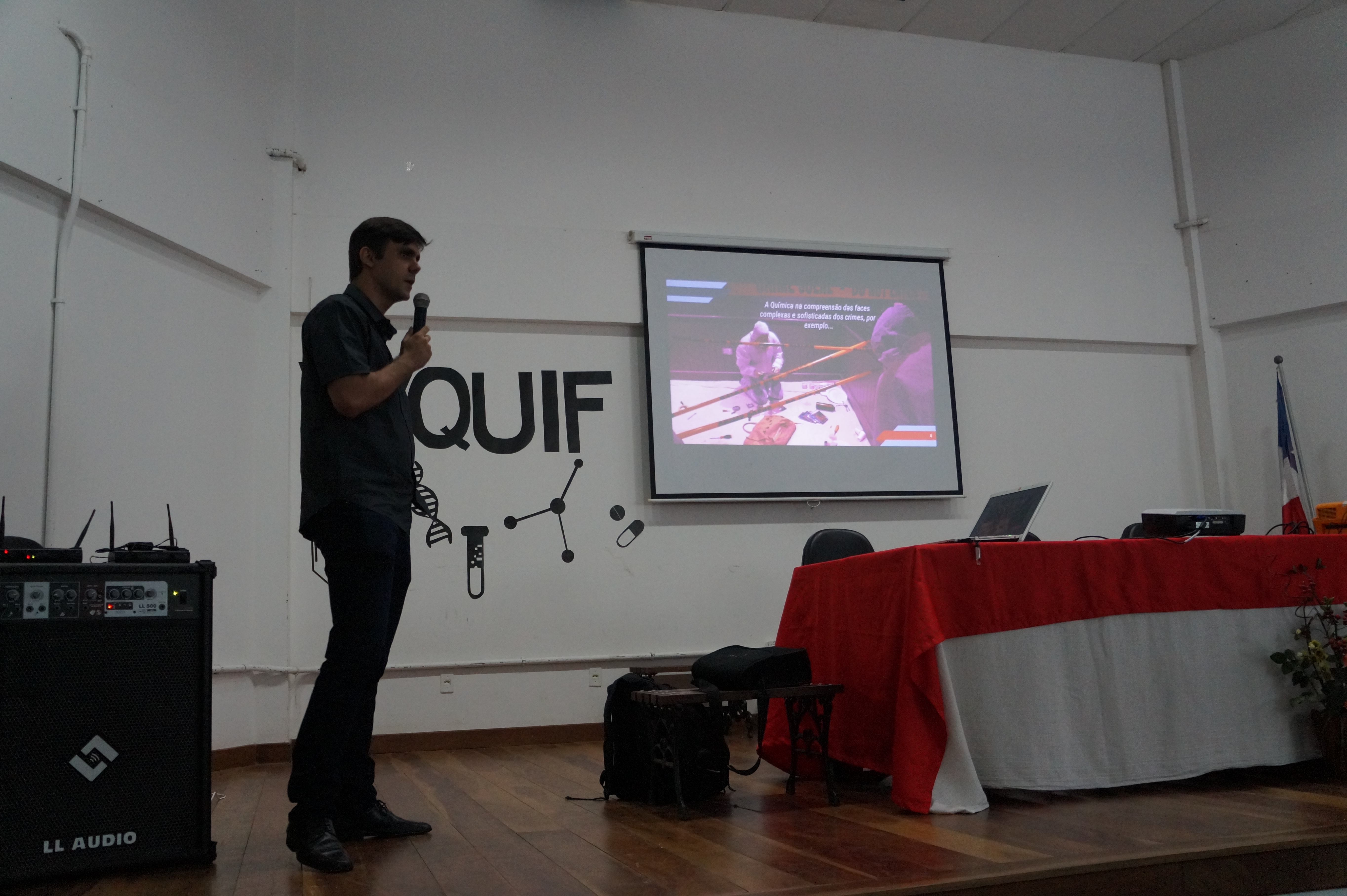 Após aberto o evento, ainda no auditório, o Professor Doutor José Tiago Pereira Barbosa realizou a primeira palestra do evento, intitulada “Ferramentas Estatísticas para Fins Analíticos – Recursos e Possibilidades.” A tarde, nas salas de aula, teremos os minicursos e a noite a Apresentação de trabalhos Científicos. Amanhã (quarta-feira), teremos pela manhã as palestras Química Industrial – Desafios e Possibilidades, ministrada pela Profª Msc. Camila Pontes Pena e O Papel da Escola Móvel na Divulgação Científica, ministrada pelo Prof. Euro Oliveira de Araújo, a tarde terão mais minicursos e a noite, encerrando o evento, a Mesa Redonda: Desafios na Educação na Contemporaneidade, contado com a presença da Profª. Drª. Janaína dos Reis, do Prof. Dr. Antonio Leonan, da Profª. Drª. Rosemeire Baraúna e da Prfª. Drª. Cristiane Brito. A programação completa do evento pode ser encontrada aqui.