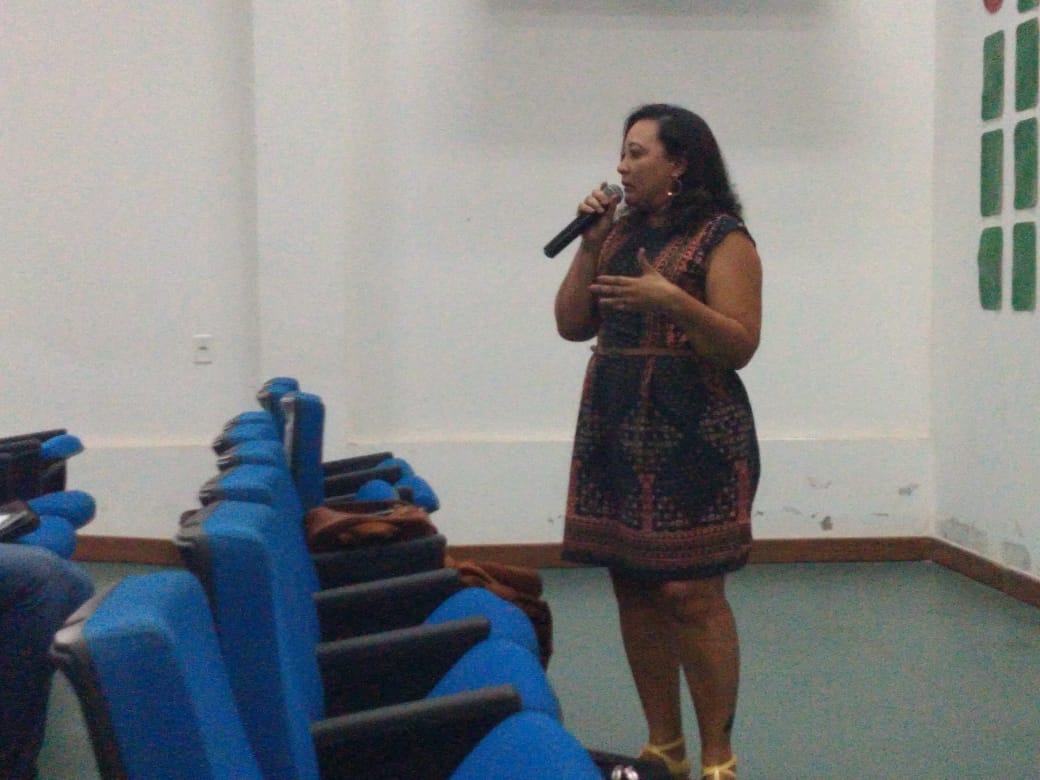 Compuseram a mesa a Diretora Geral do campus Sandra Cerqueira, a Diretora Acadêmica Alexandra Carvalho e o Coordenador do Polo André Rezende. Além disso, tivemos as presenças da professora Fernanda Meneses, tutora presencial do curso e da professora Janaína Rosado, tutora a distância do curso.