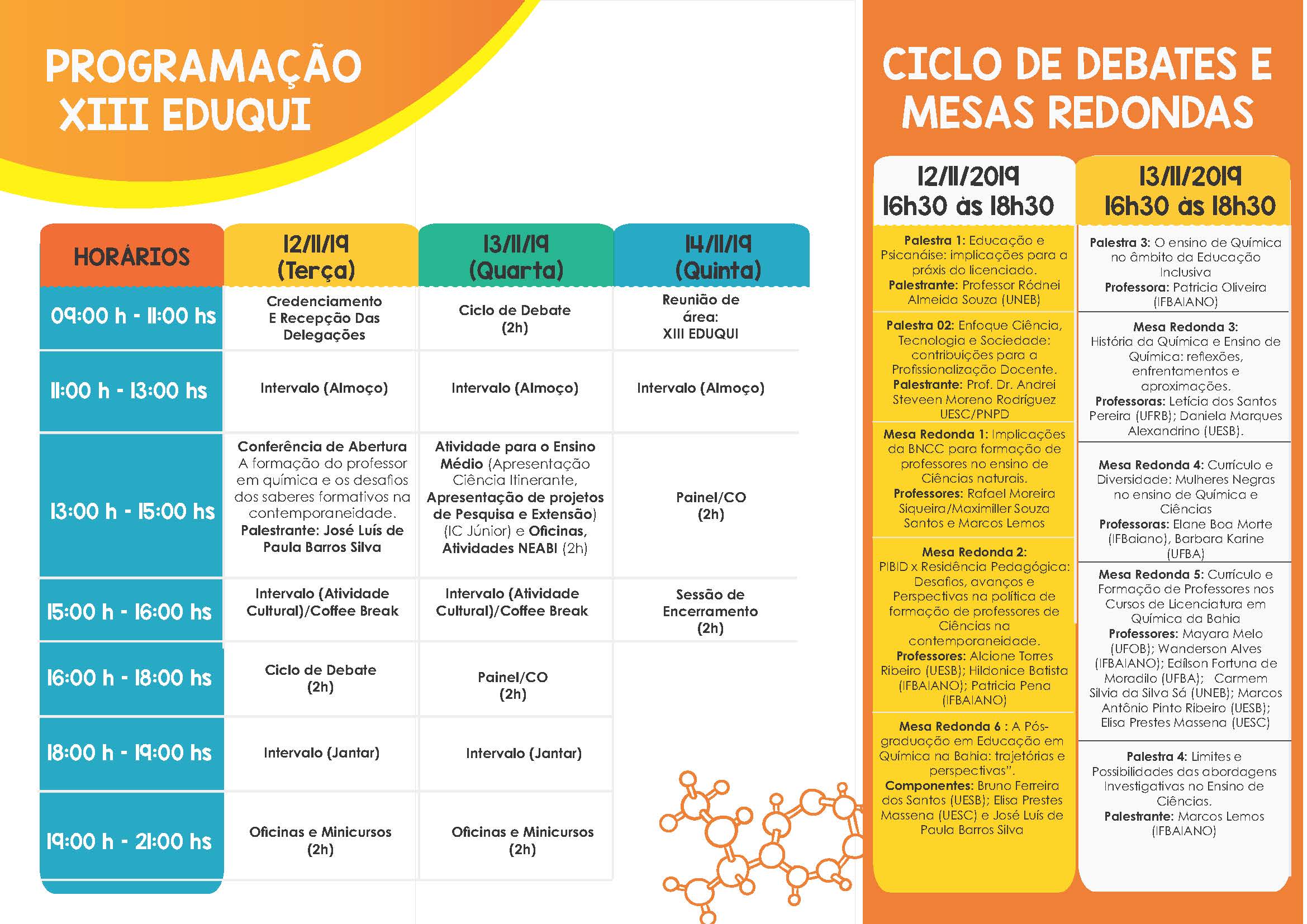 De 12 a 14 de novembro de 2019, no Instituto Federal Baiano, acontecerá o XIII EDUQUI – Encontro de Educação Química da Bahia este ano com o tema A formação do professor em química e os desafios dos saberes formativos na contemporaneidade.