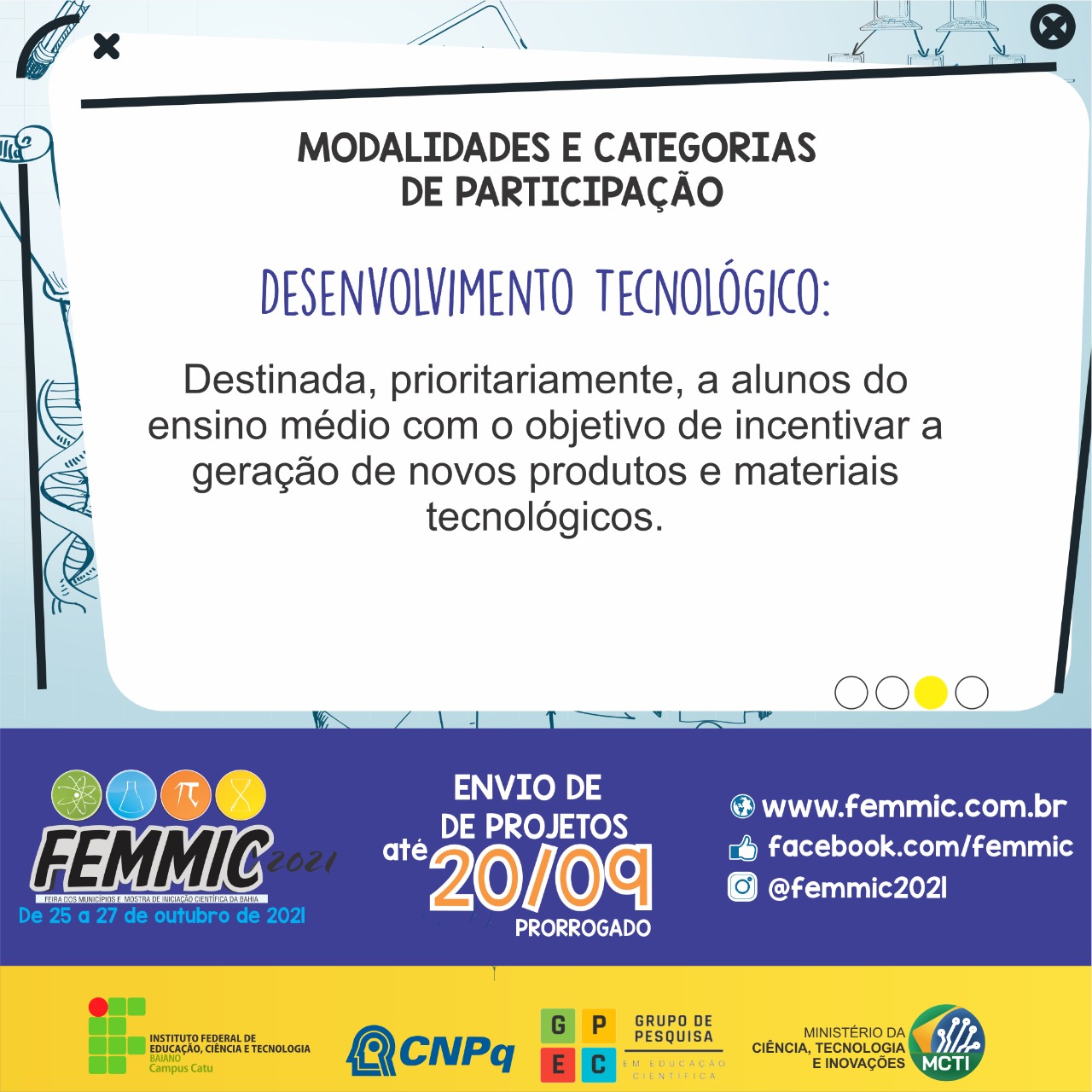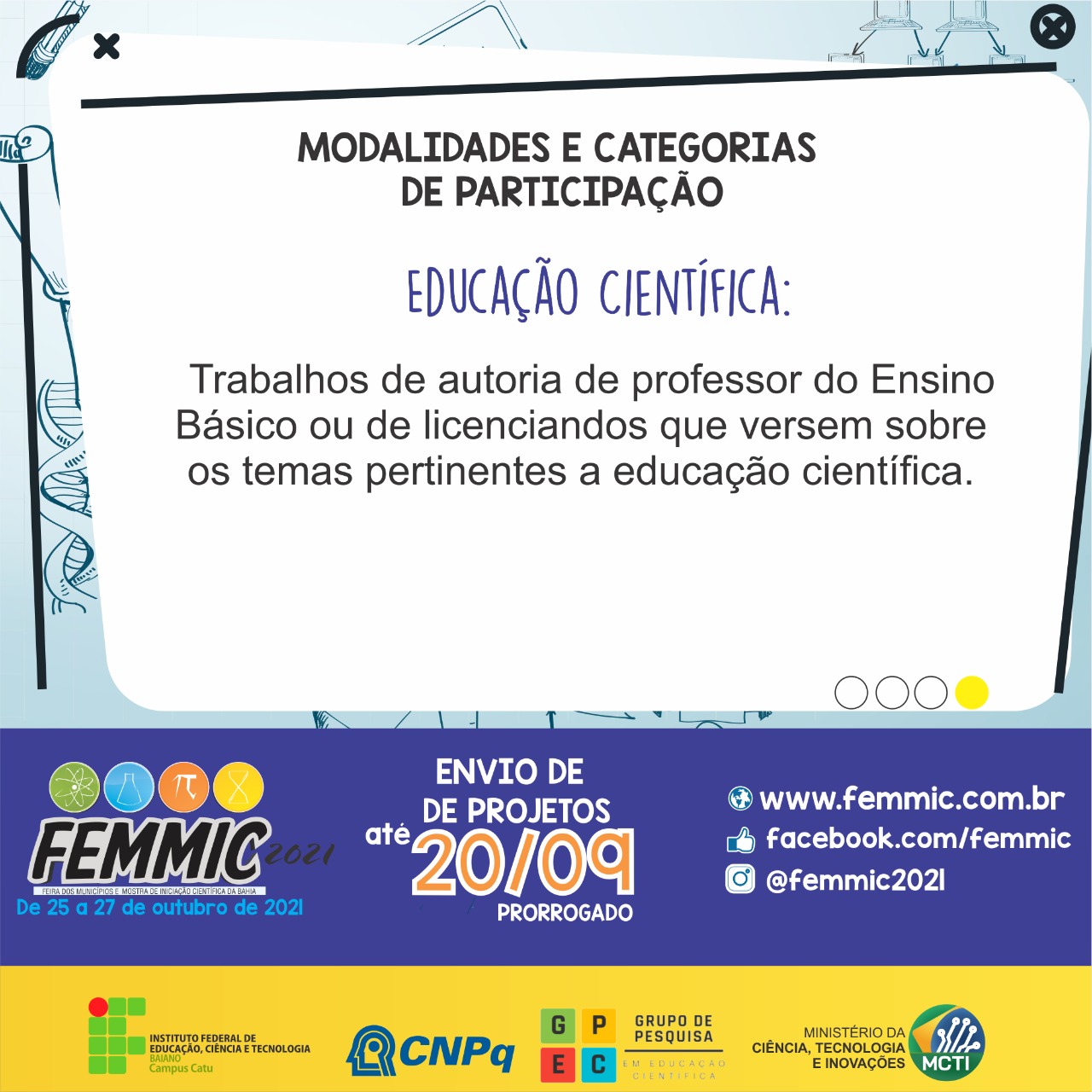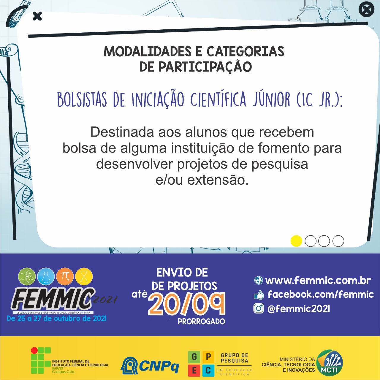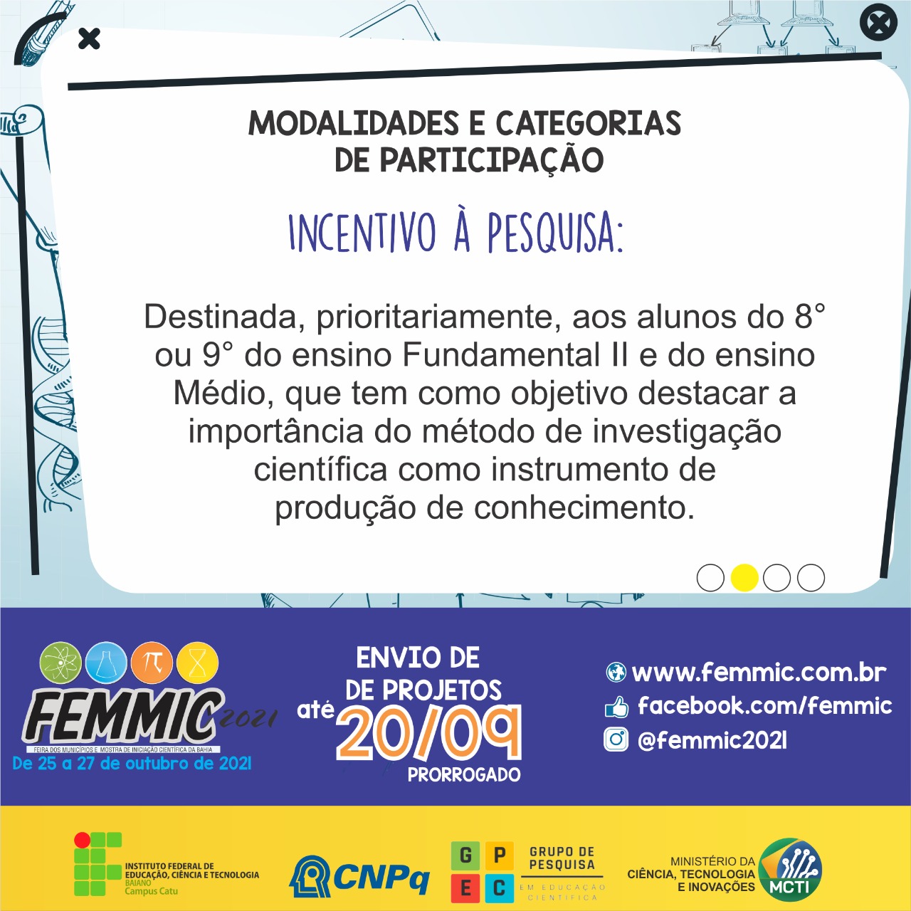 SUBMETA UM TRABALHO DE PESQUISA NA 15ª FEMMIC!