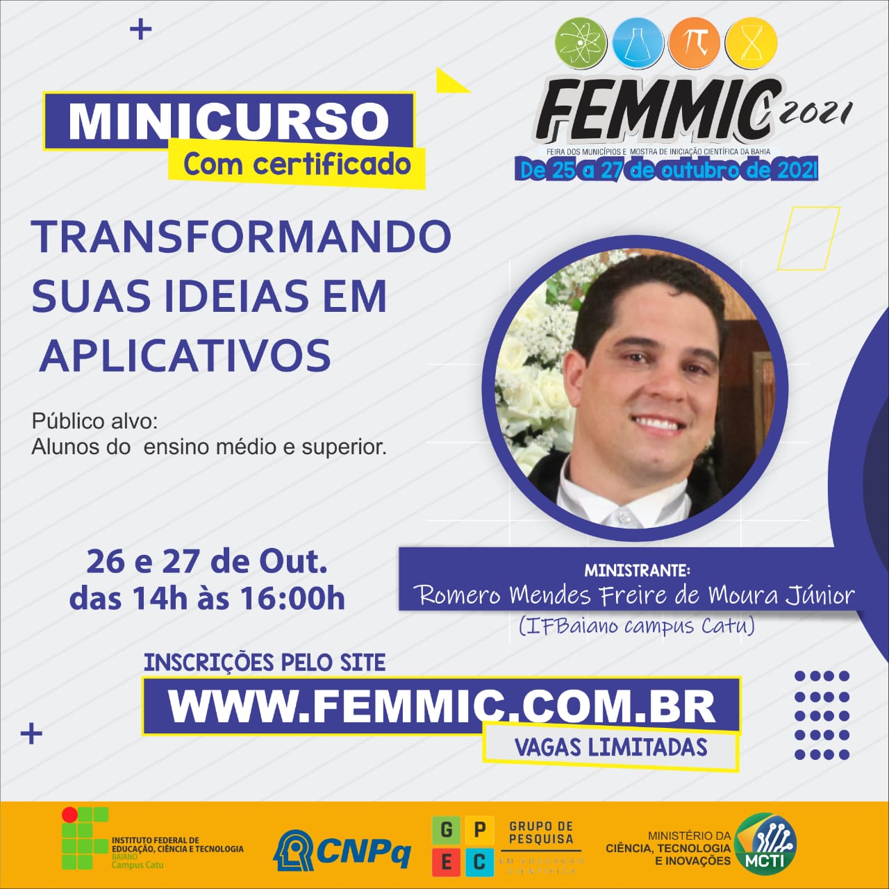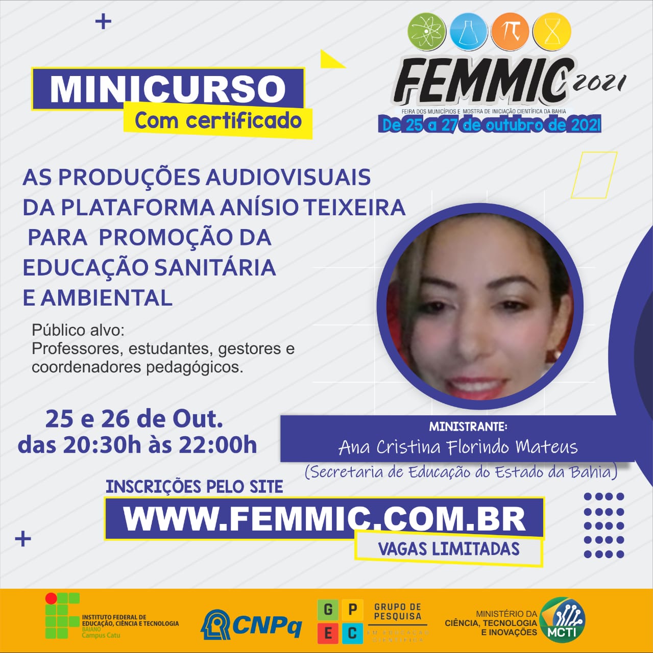 A Feira, que é voltada à iniciação científica, será realizada 100% online, com emissão de certificado.