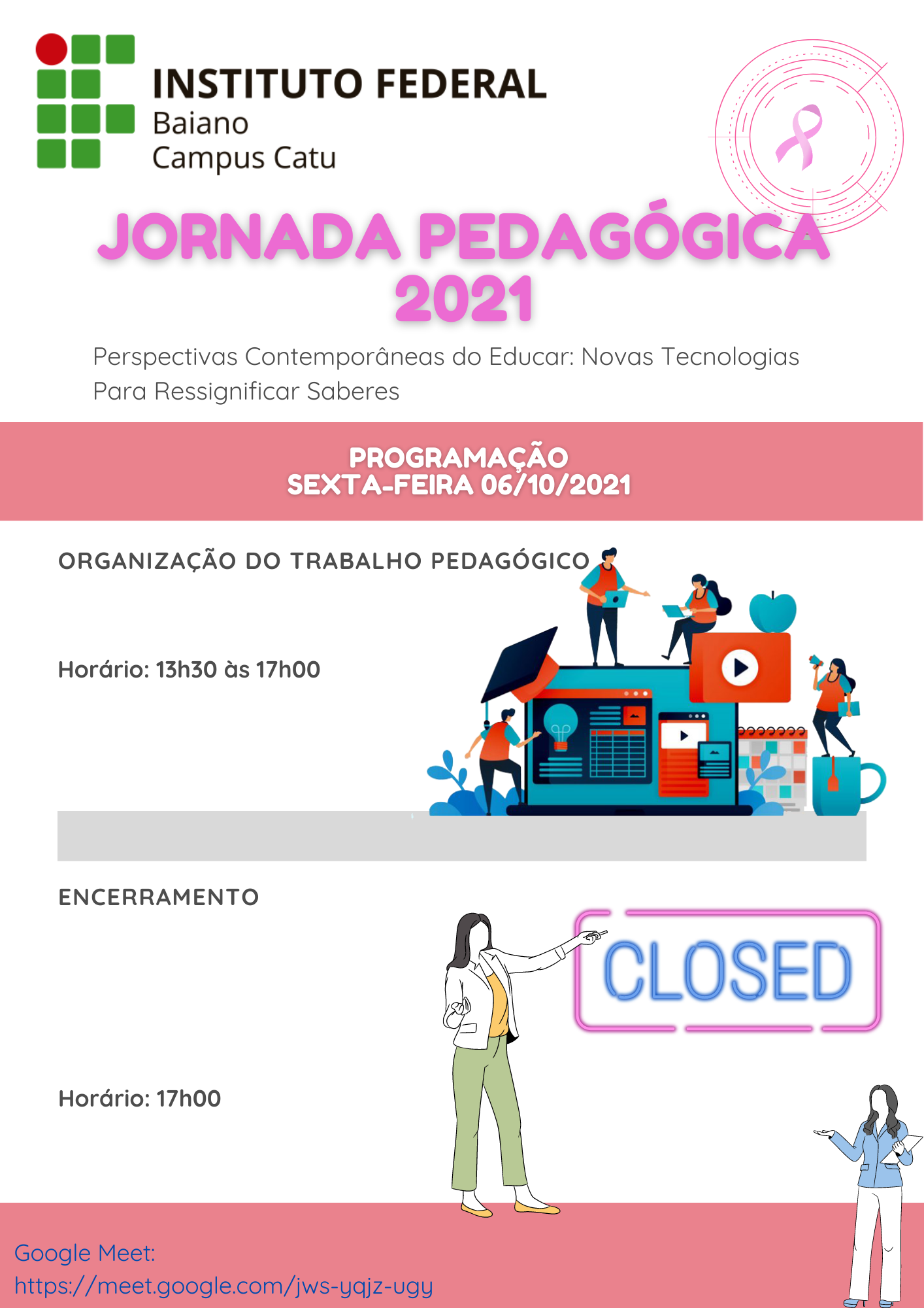 A nossa Jornada Pedagógica 2021 contará com diversas atividades, todas pensadas para as questões que tocam o trabalho pedagógico, visando a afirmar nosso compromisso com uma educação pública de qualidade e socialmente referenciada.