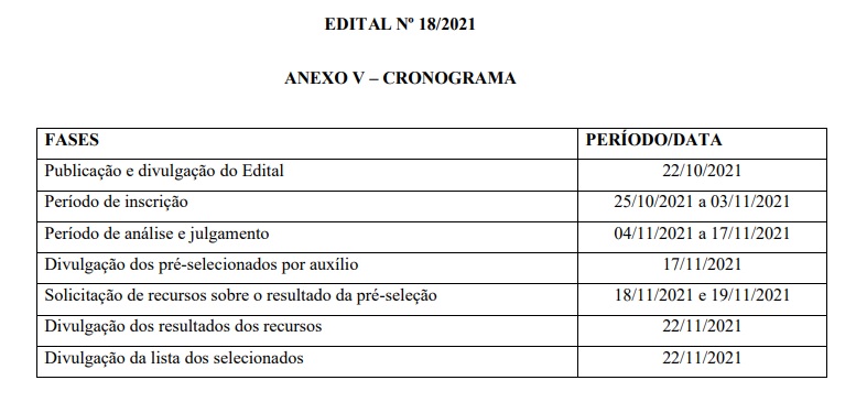 Retificação do Cronograma do Edital 18/2021