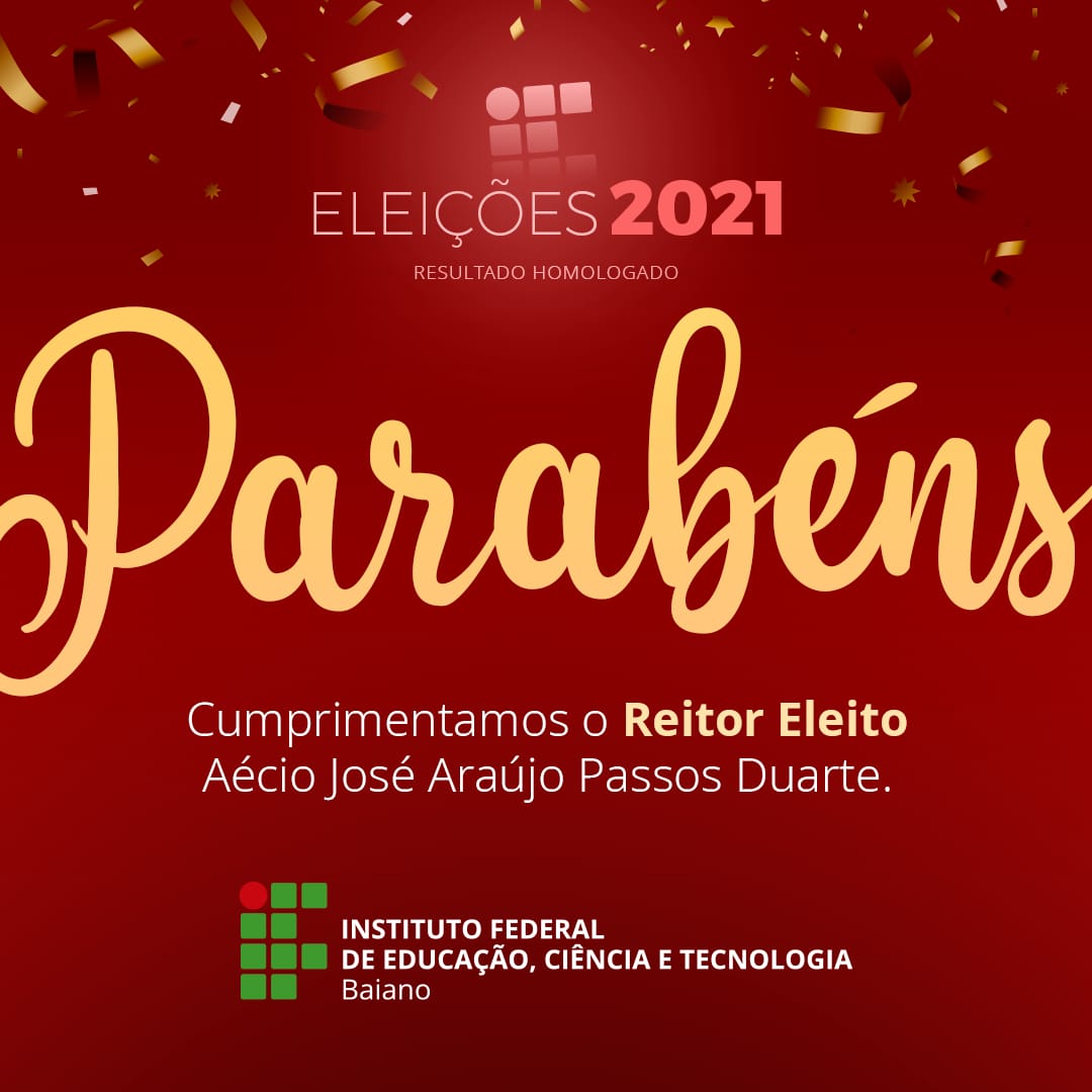 Parabéns ao Prof. Aécio Duarte, reeleito ao cargo de Reitor do IF Baiano! E, igualmente, parabéns a todos(as) os(as) 14 diretores(as) eleitos para o próximo quadriênio. 🥳👏🤝