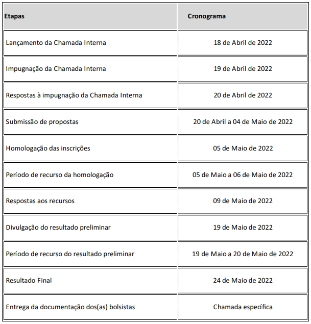 O REITOR DO INSTITUTO FEDERAL DE EDUCAÇÃO, CIÊNCIA E TECNOLOGIA BAIANO – IF BAIANO, por meio da PRÓ-REITORIA DE PESQUISA E INOVAÇÃO, no uso de suas atribuições legais; e baseados no Programa Instrucional de Bolsas de Iniciação Científica do IF Baiano, conforme Resolução Nº 03, de 23 de abril de 2010, Resolução Nº 06, de 29 de março de 2011, Resolução 20, de 18 de junho de 2013; o Programa de bolsas de Iniciação Cientifica e Tecnologia na Pesquisa do IF Baiano; conforme a Resolução Nº 69/2020- OS-CONSUP/IF BAIANO, de 09 de junho de 2022; e Portaria Nº 58, de 21 de novembro de 2014 da Secretaria de Educação Profissional e Tecnológica do Ministério da Educação (SETEC/MEC), e alterações, sob os fundamentos de que trata a Lei Nº 12.155/2009 e Decreto Nº 7.416/2010, torna pública esta Chamada Interna com as normas para a concessão de bolsas de Iniciação Científica (PIBIC/IF Baiano), apoiada pela Fundação de Amparo à Pesquisa do Estado da Bahia (FAPESB), por meio do sistema de cotas