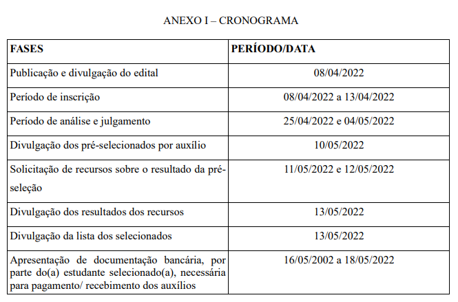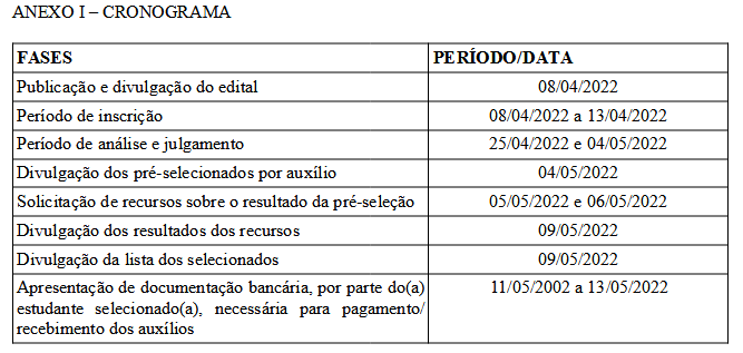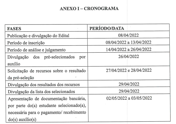 EDITAL Nº 05/2022 – PROGRAMA DE ASSISTÊNCIA E INCLUSÃO SOCIAL DO ESTUDANTE – PAISE
