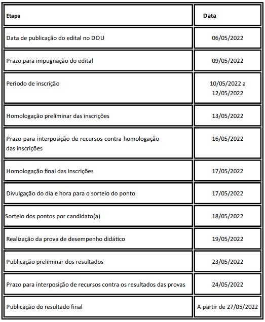 Edital n° 612022 – PROVA DE DESEMPENHO DIDÁTICO – 20/05/2022