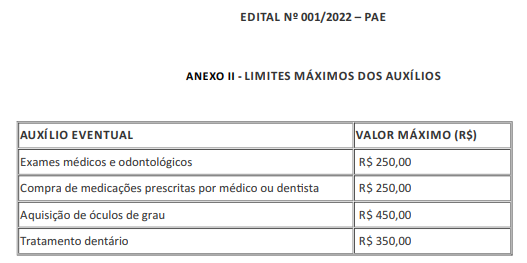 EDITAL Nº 001/2022 de 27 de janeiro de 2022 (PROGRAMA DE AUXÍLIOS EVENTUAIS – PAE)