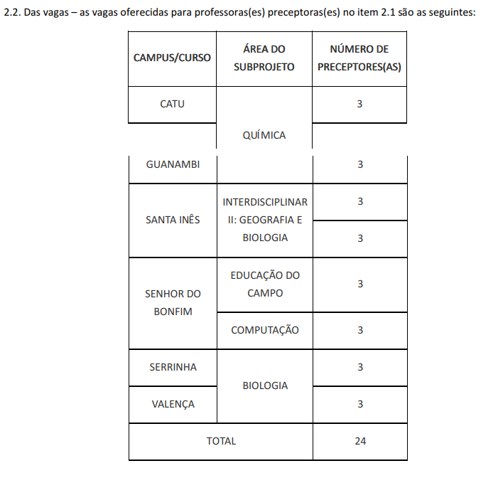 Reitoria: Rua do Rouxinol, nº 115, Imbuí, Salvador-BA. CEP: 41720-052. CNPJ: 10.724.903/0001-79 Telefone: (71) 3186-0001 | E-mail: gabinete@ifbaiano.edu.br