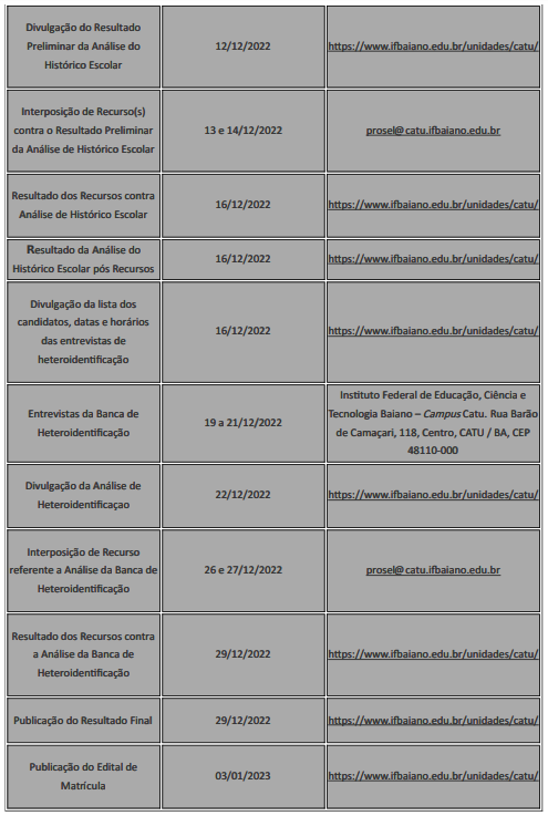 Reitoria: Rua do Rouxinol, nº 115, Imbuí, Salvador-BA. CEP: 41720-052. CNPJ: 10.724.903/0001-79 Telefone: (71) 3186-0001 | E-mail: gabinete@ifbaiano.edu.br