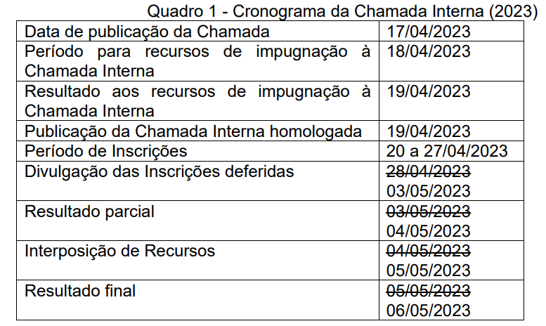 RETIFICAÇÃO – CHAMADA INTERNA DOCENTES 2023 – 02/05/2023